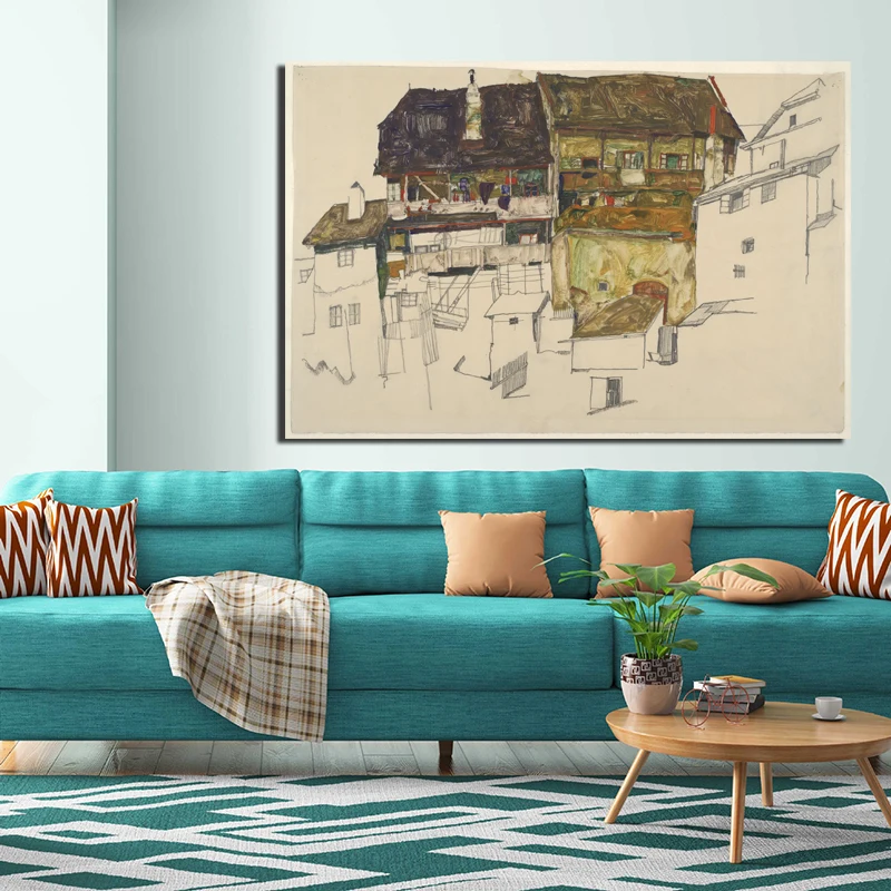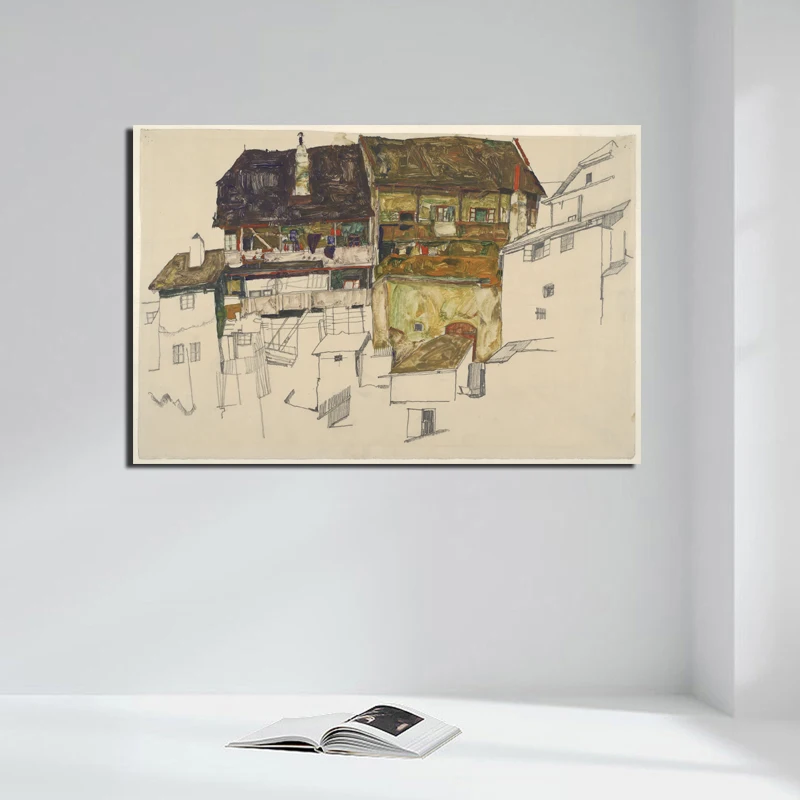 Настенная картина Egon Schiele со старым домом, постеры на холсте, современная живопись, Настенная картина для гостиной, домашний декор, художественное оформление