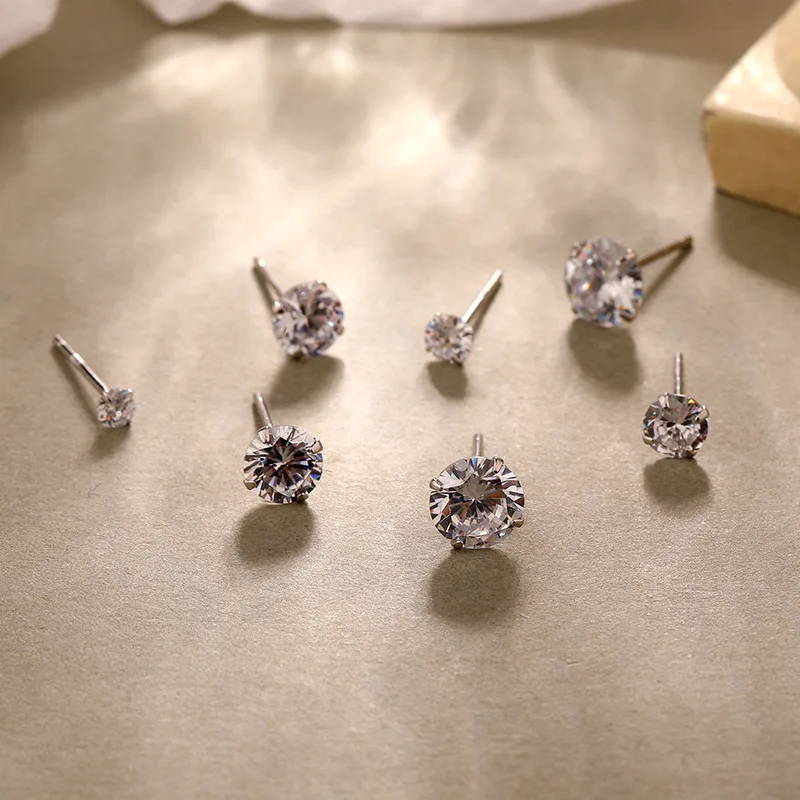 Серьги из серебра 925 пробы с 4 зубцами, 3-7 мм, 4A + CZ, Серьги Для Пирсинга Ушей, ювелирные изделия, C-E007