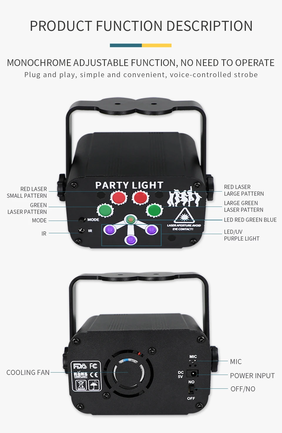 Светодиодный проектор YSH, 240 узоров, для диджеев, сцены, лазерный проектор вечерние, дискотек, стробоскоп, УФ-лампа фиолетового цвета, шар для украшения дома, автомобиля, KTV, шоу, бар