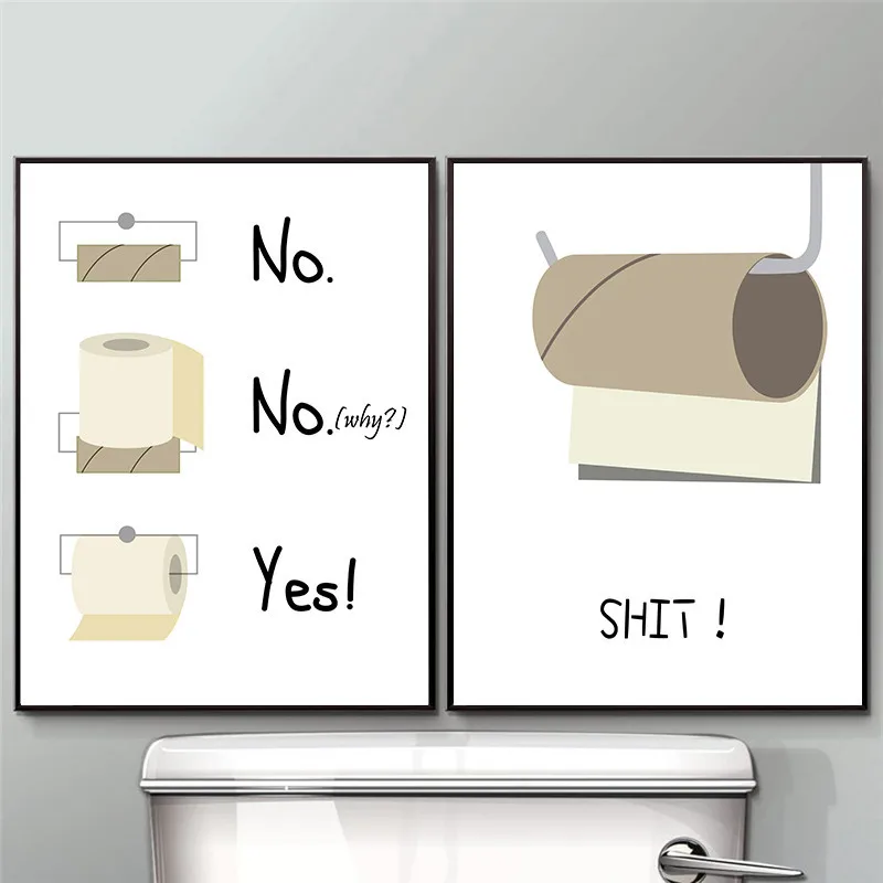 Забавный знак для ванной, холст, постер, настенные художественные п...