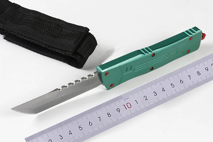 Полная длина: 24,5 смДлина лезвия: 9,5 смДлина ручки: 15,0 смШирина лезвия: 2,1 смТолщина лезвия: 0,3 смМатериал лезвия: серый титан 7CR17 плюс обработка камнем. Заостренное шлифование.Материал ручки: алюминиевый сплав, покрытый зеленым титаном.Вес: 250 г (включая упаковку)Аксессуары: цветная коробка, инструмент для удаления Бесплатный нож