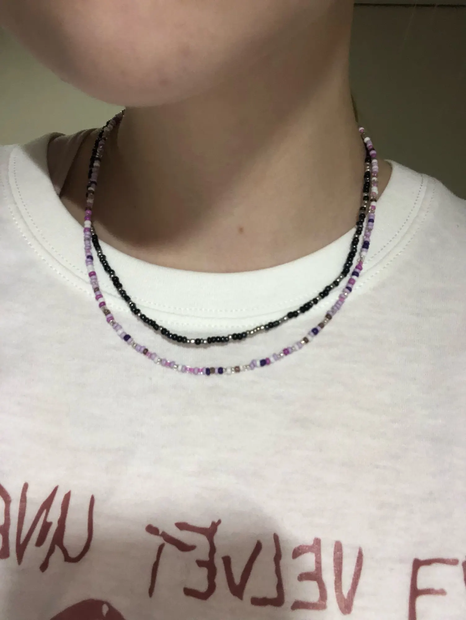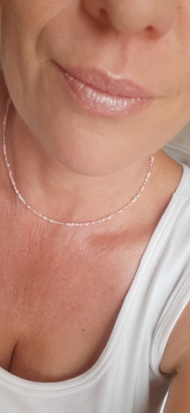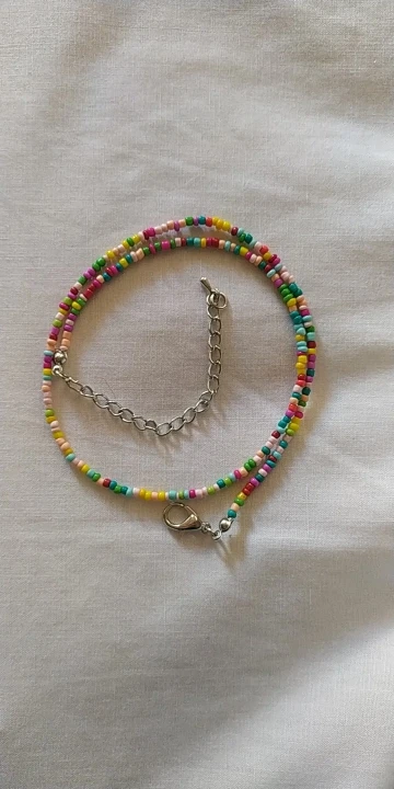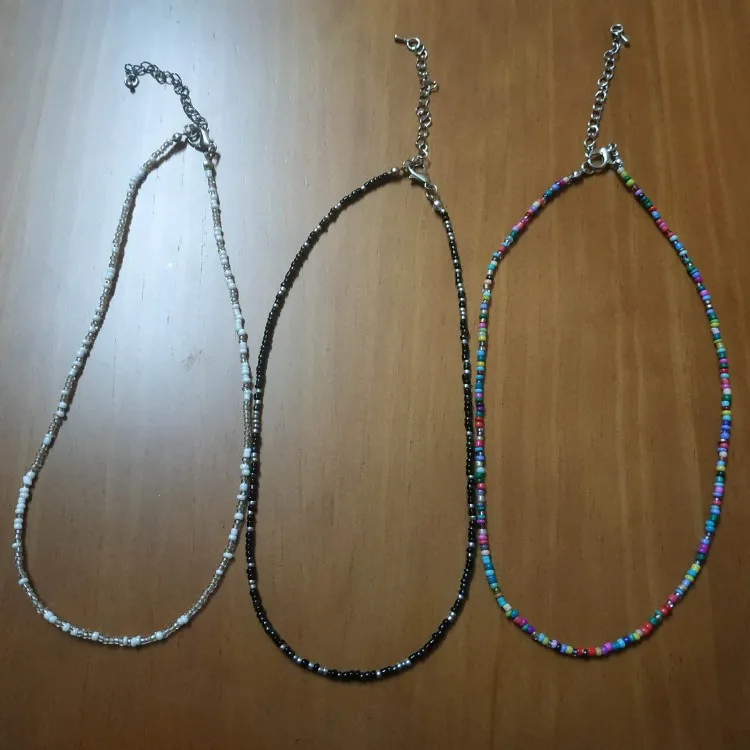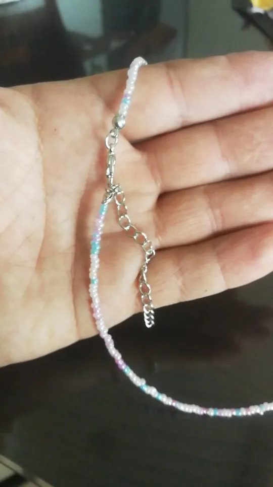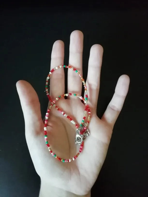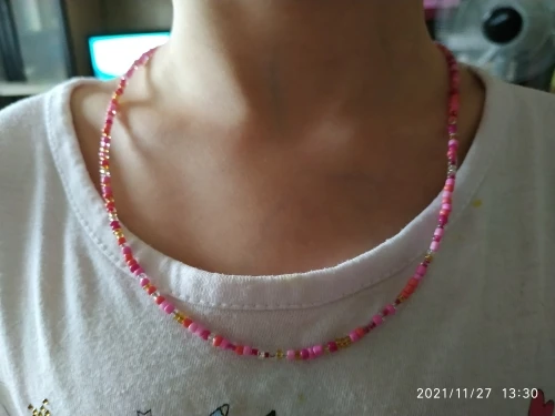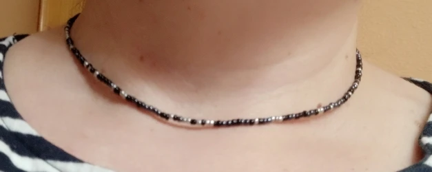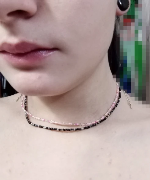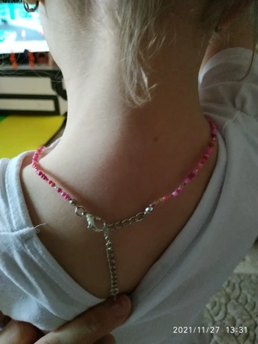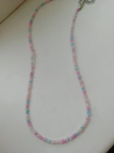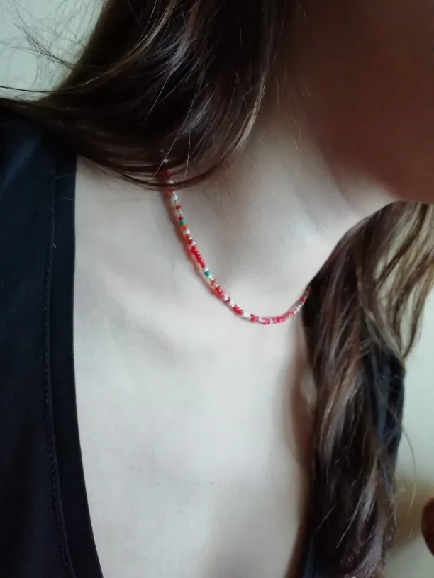 Есть небольшой брак склеенные бусинки. А так все супер. Длина все таки не чокера, не под шею , а чуть более свободная