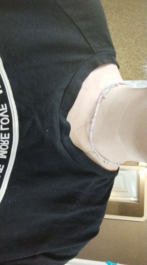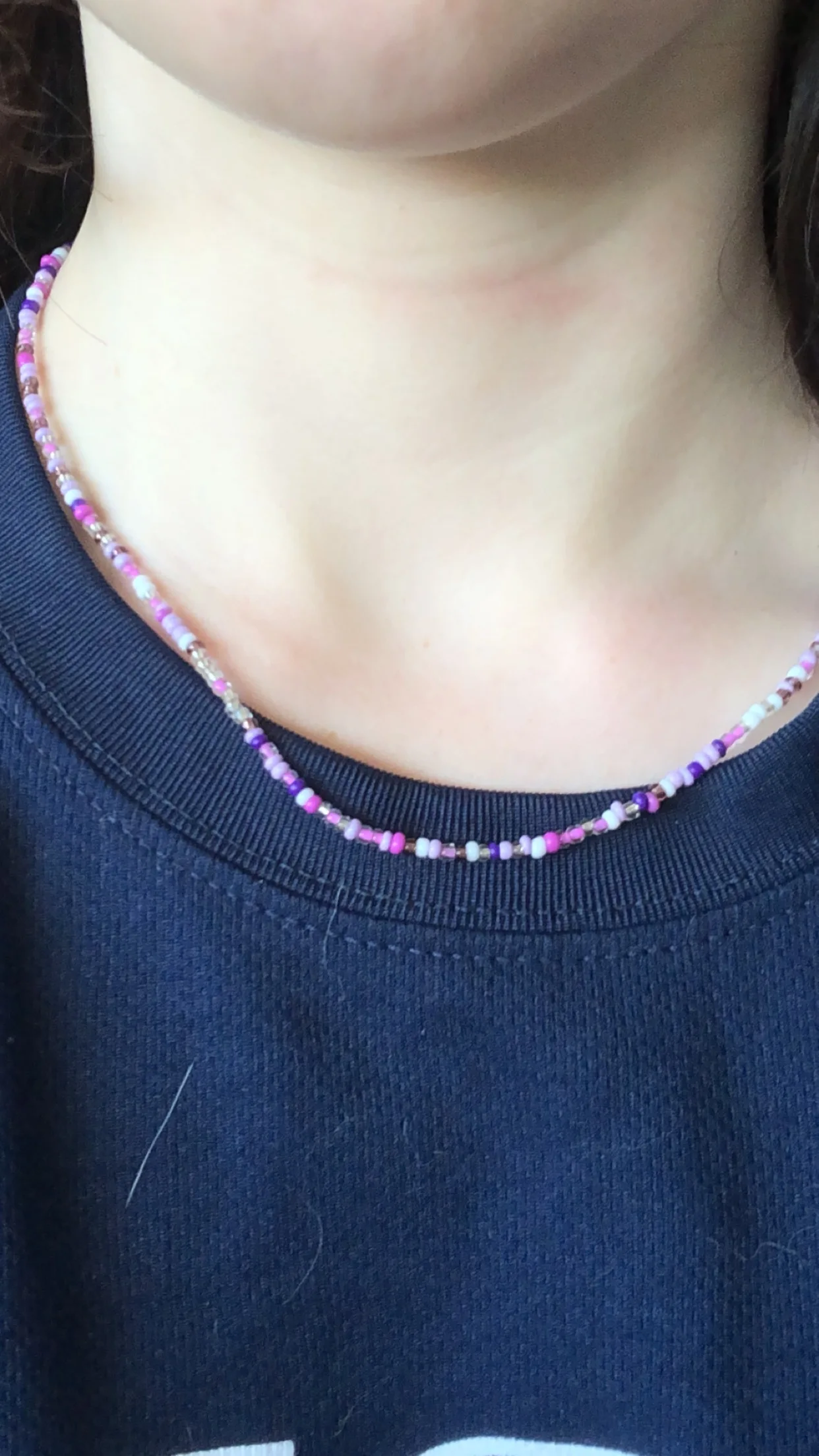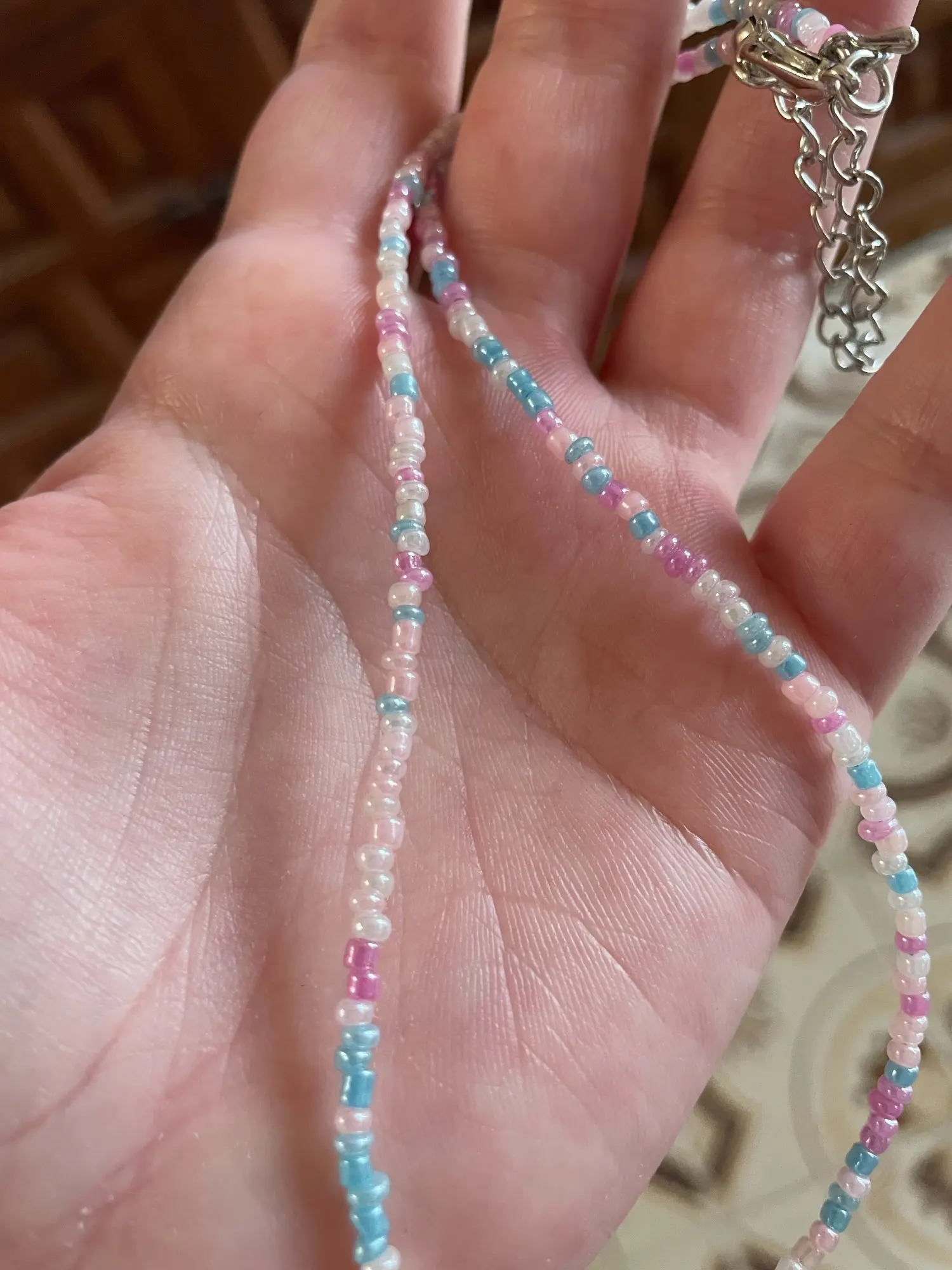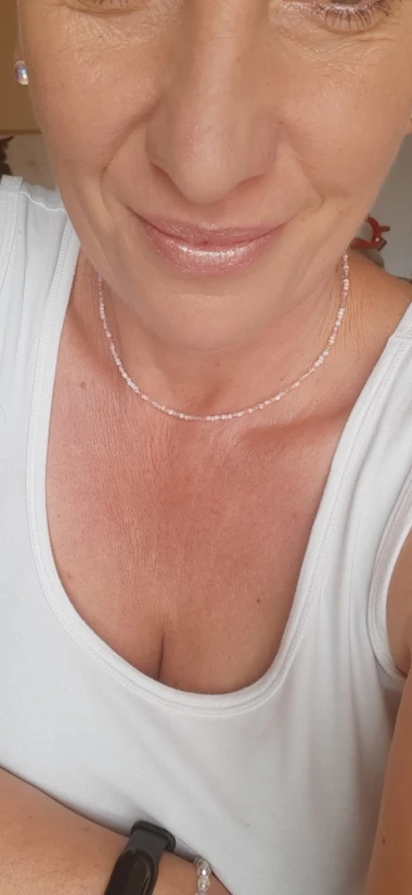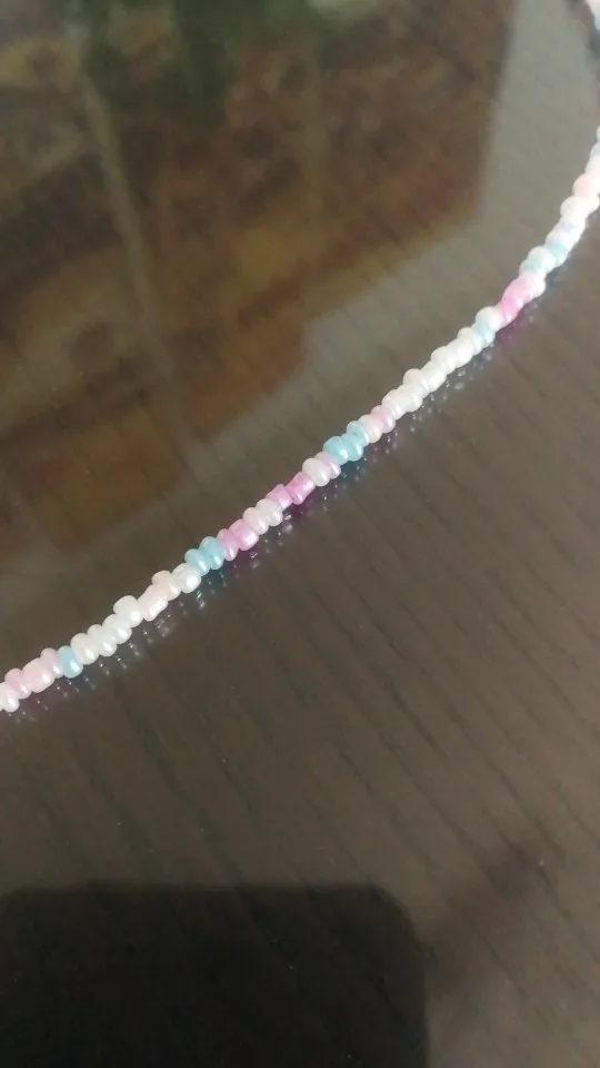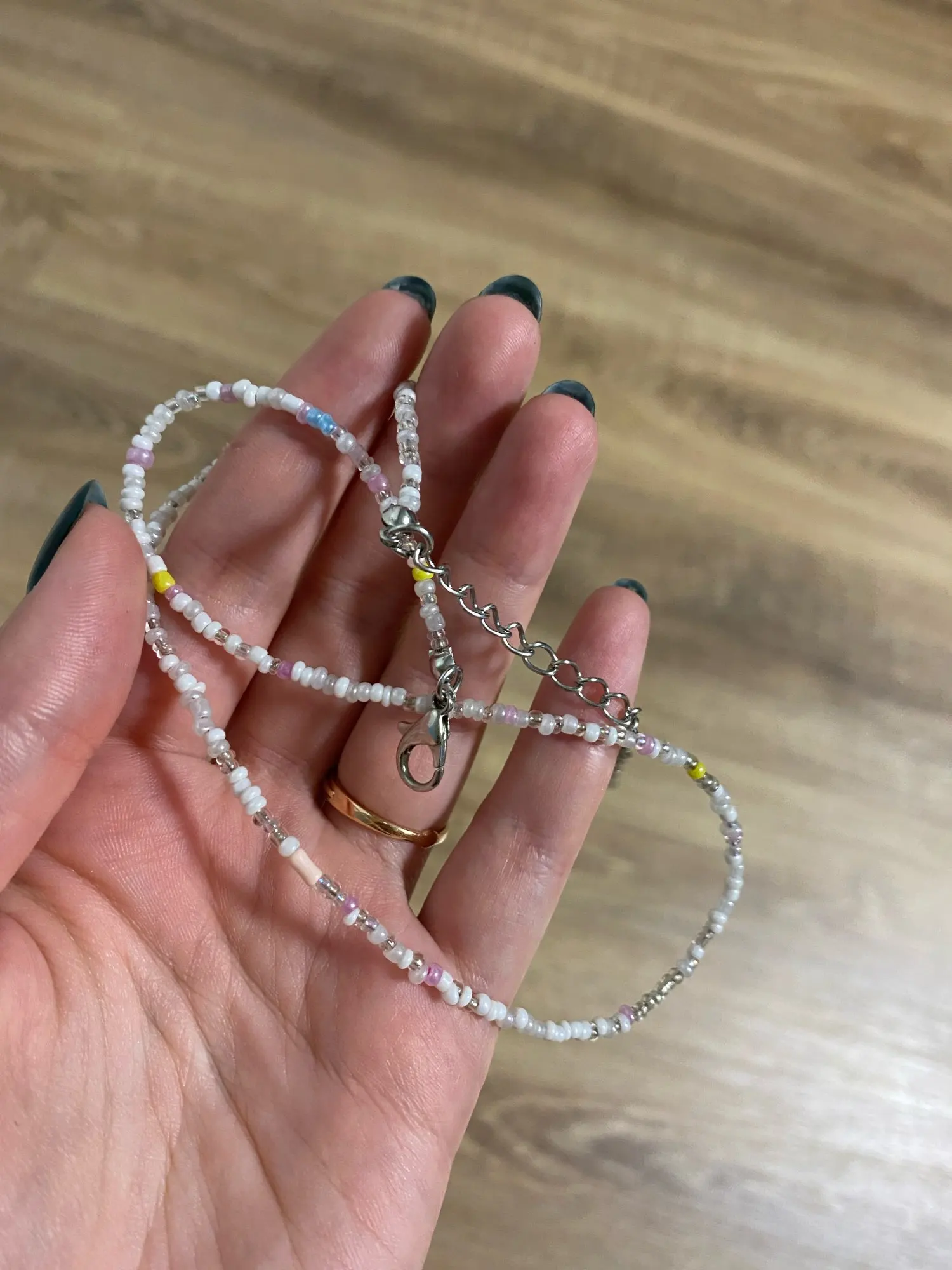 Есть небольшой брак склеенные бусинки. А так все супер. Длина все таки не чокера, не под шею , а чуть более свободная