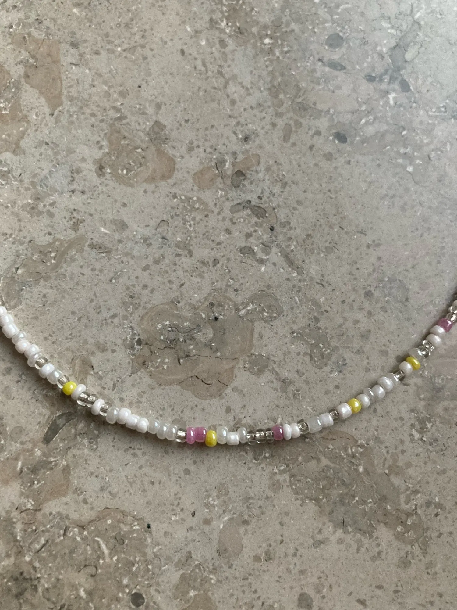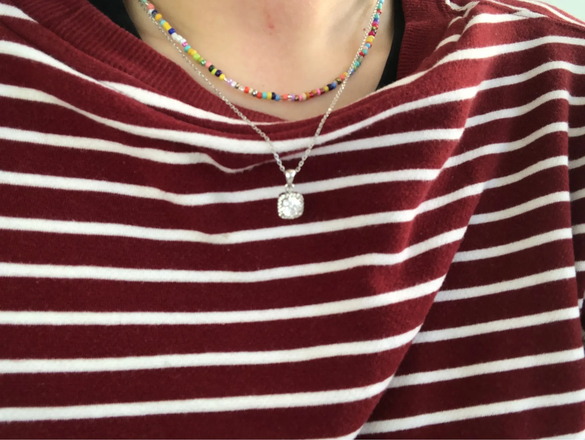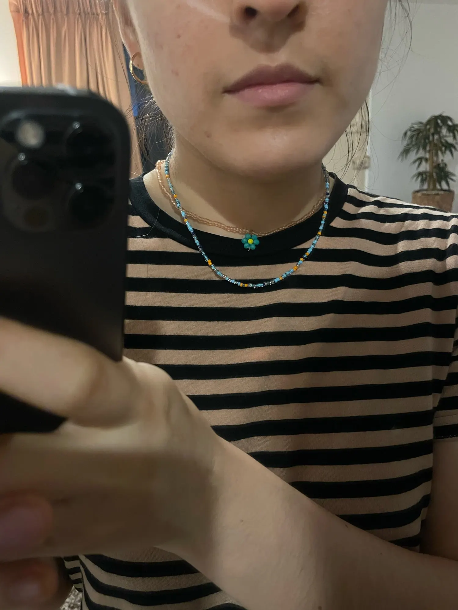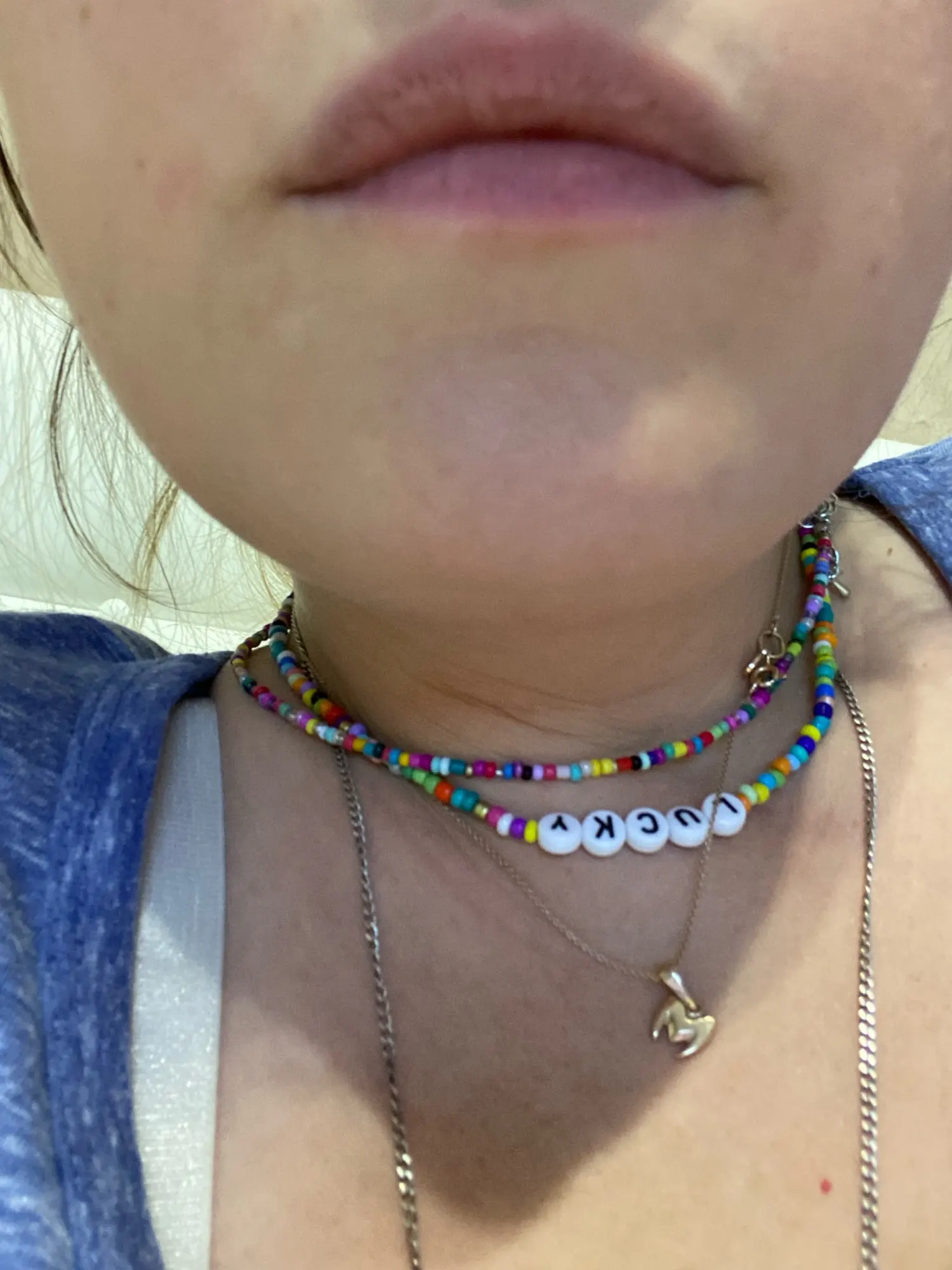 Есть небольшой брак склеенные бусинки. А так все супер. Длина все таки не чокера, не под шею , а чуть более свободная