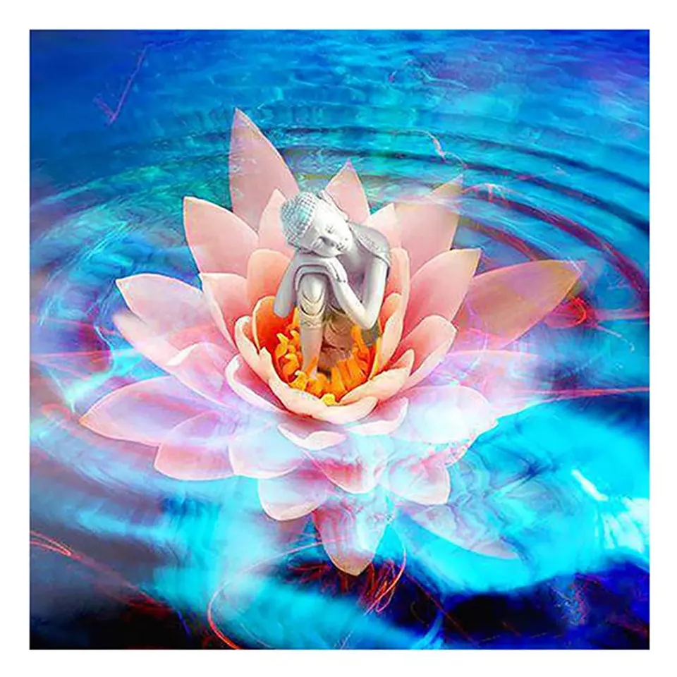 5D DIY Алмазная Картина Набор для вышивки крестом с алмазной мозаикой вышивка "Будда лотоса" 3D картина Круглый Алмаз Домашний Декор подарок