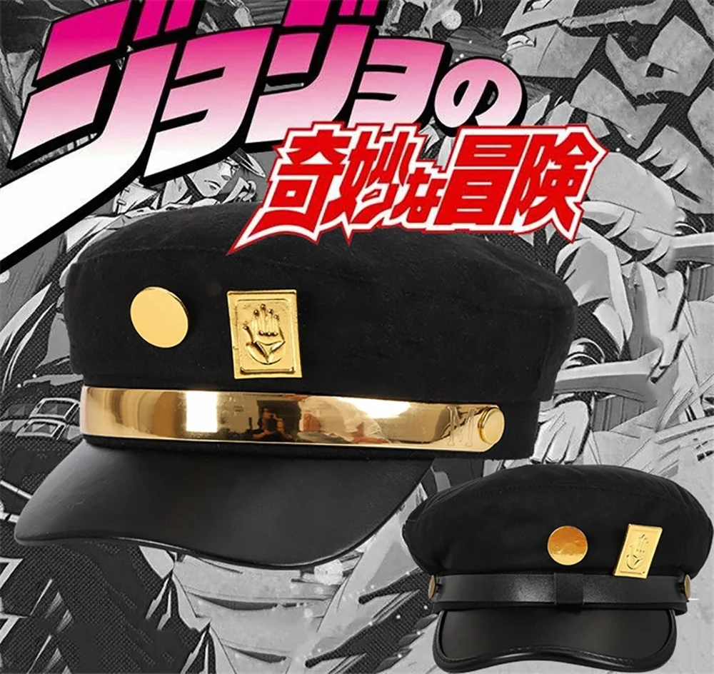 Кепка для косплея аниме Jotaro Kujo, Аксессуары для косплея невероятных приключений Джоджо, армейские кепки в стиле милитари, плоская шапка, значки, аниме, круглый подарок