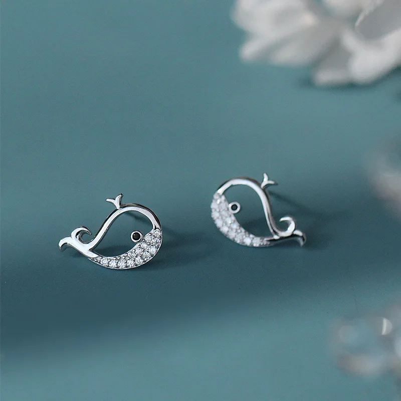 925 стерлингового серебра серьги в виде Кита пробы, Женские Простые Модные свадебные ювелирные аксессуары