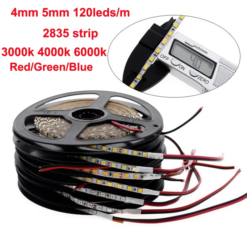 1. Размер: l5000мм (5 м) x w4мм/5 мм (120 светодиодов/м SMD2835)