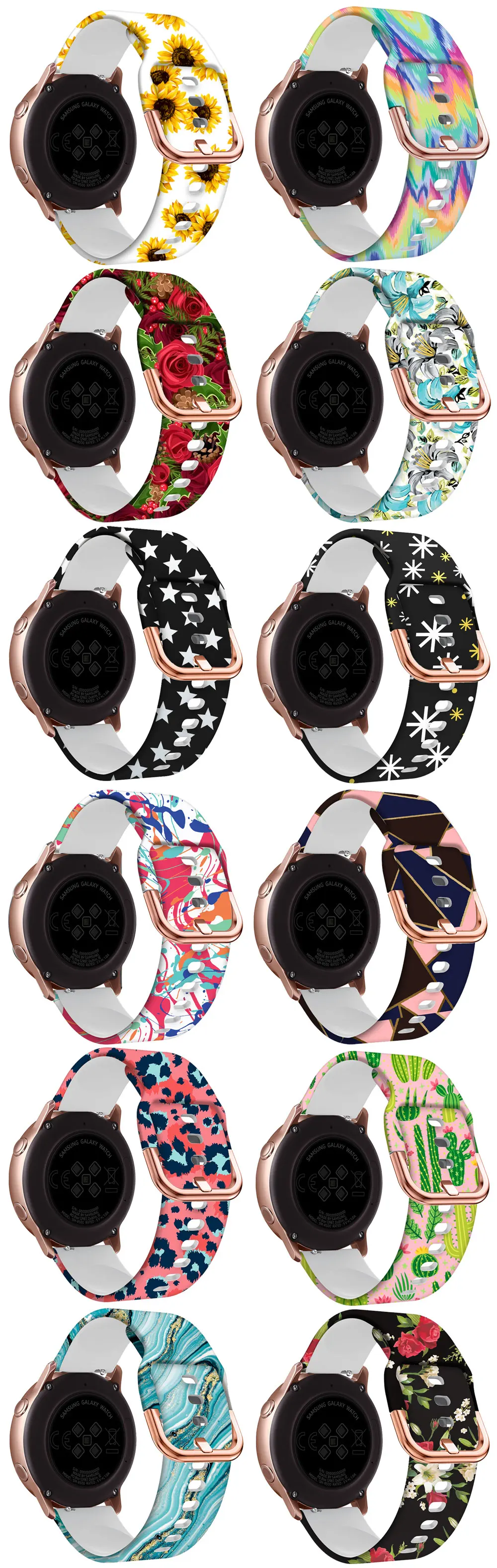 Силиконовый ремешок для часов с принтом 20 мм для Samsung Galaxy Watch Active 2 40/44/S2/3 41, ремешок для браслета Correa для Galaxy Watch 42