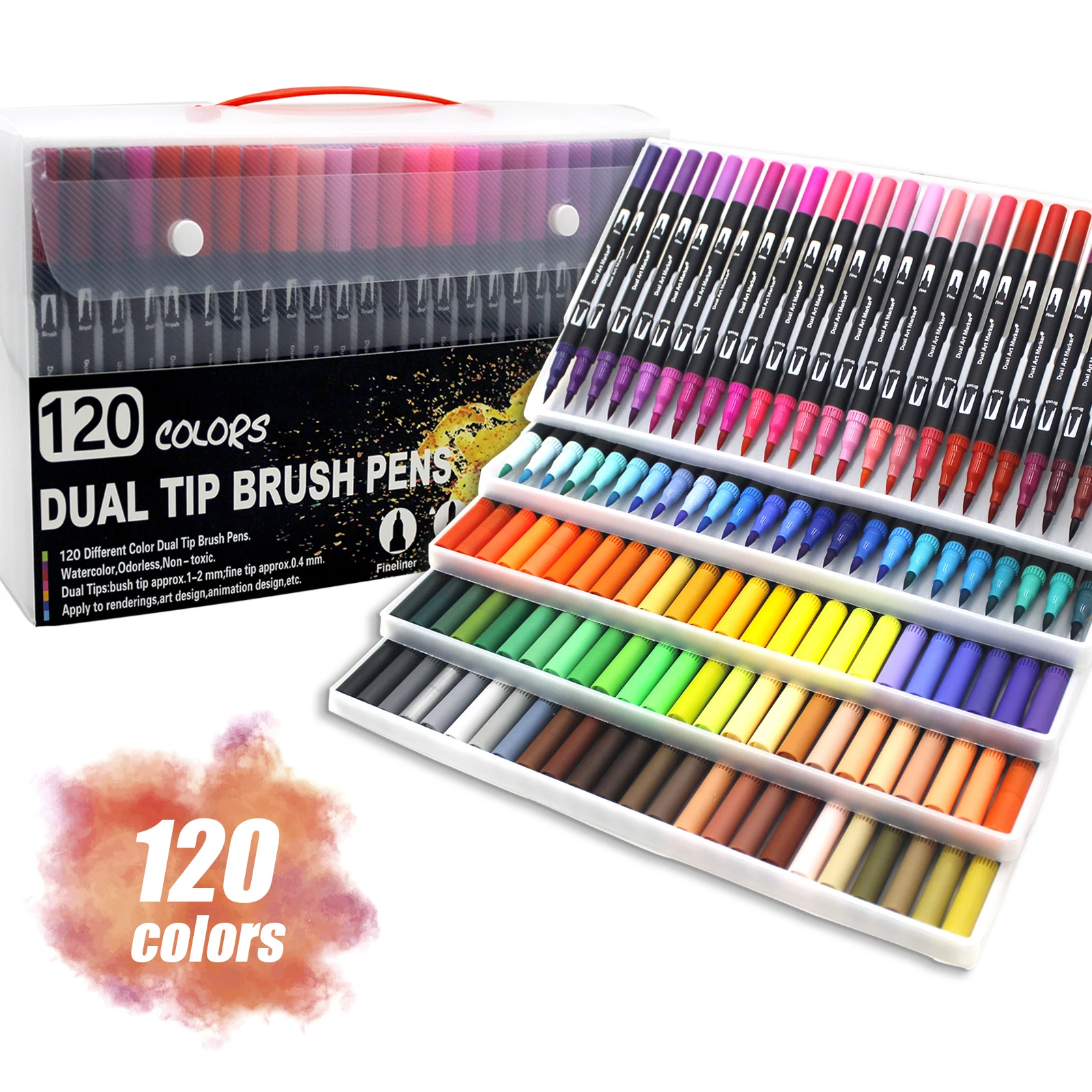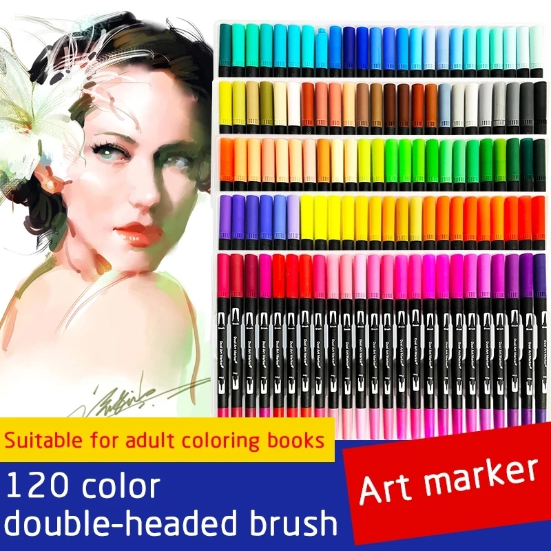Маркеры фломастеры, акварельные кисти, 120 цветов, двойной наконечник, художественные маркеры, фломастеры, скетчбуки для рисования