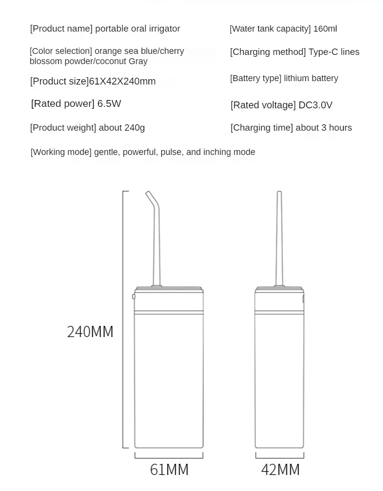Ирригатор полости рта Аккумуляторный с USB, 200 мл