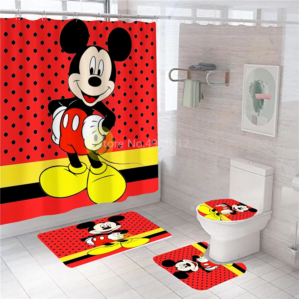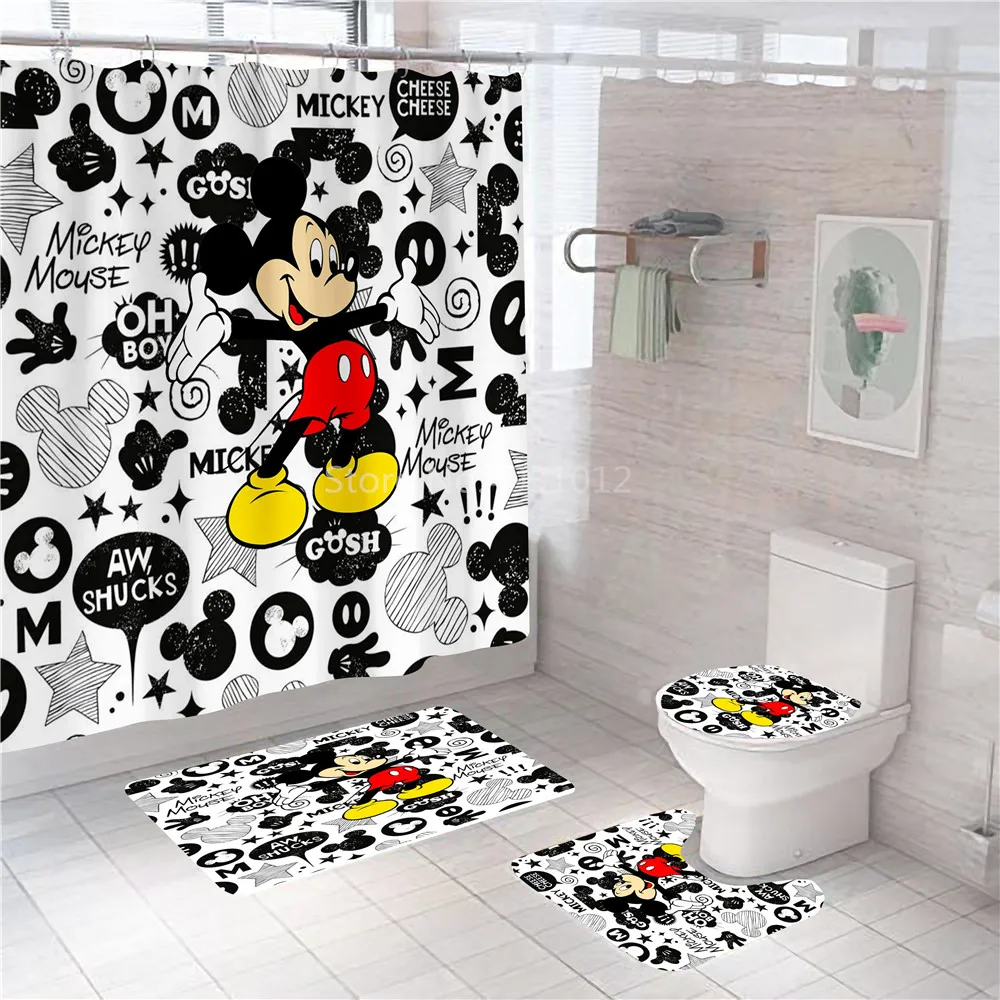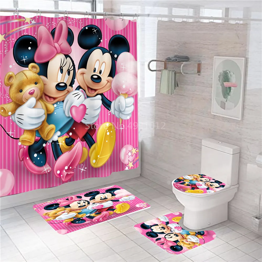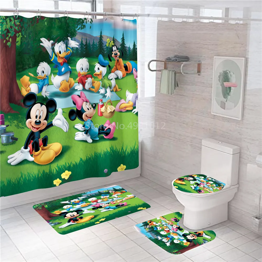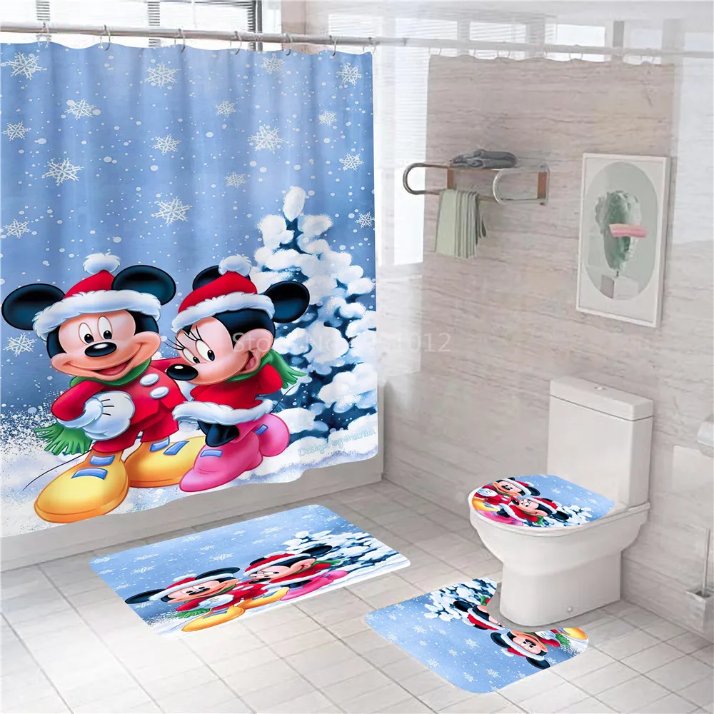 Занавеска для душа, с принтом Диснея, Микки и Минни Маус, 12 крючков, для дома
