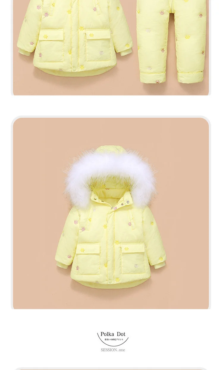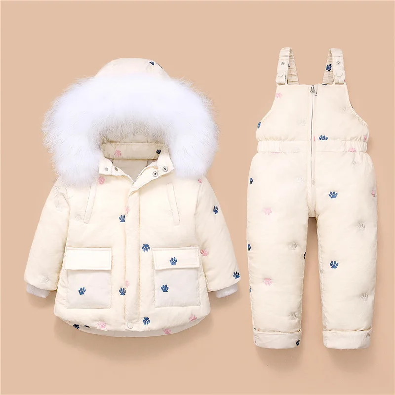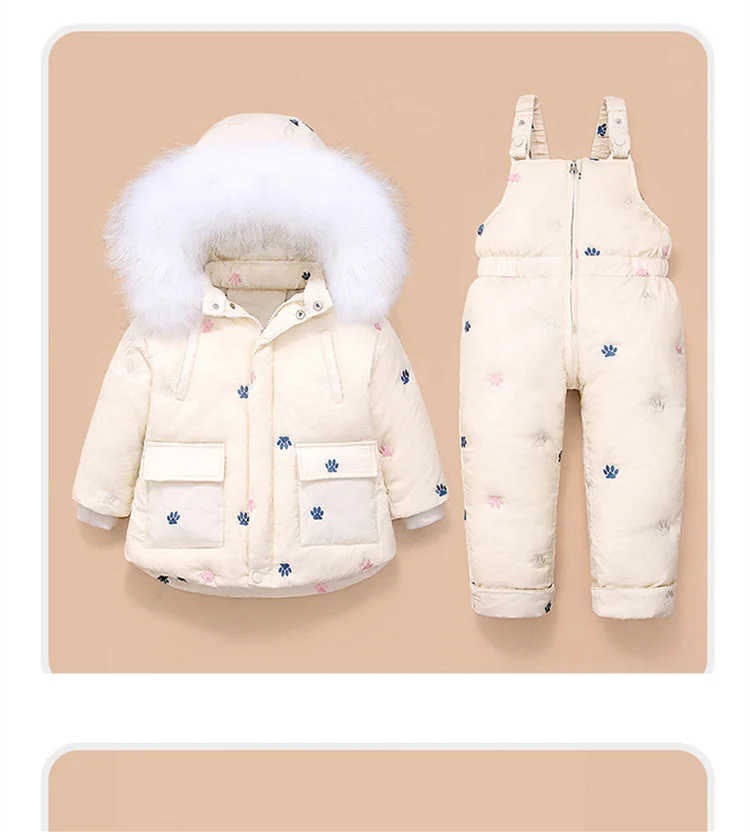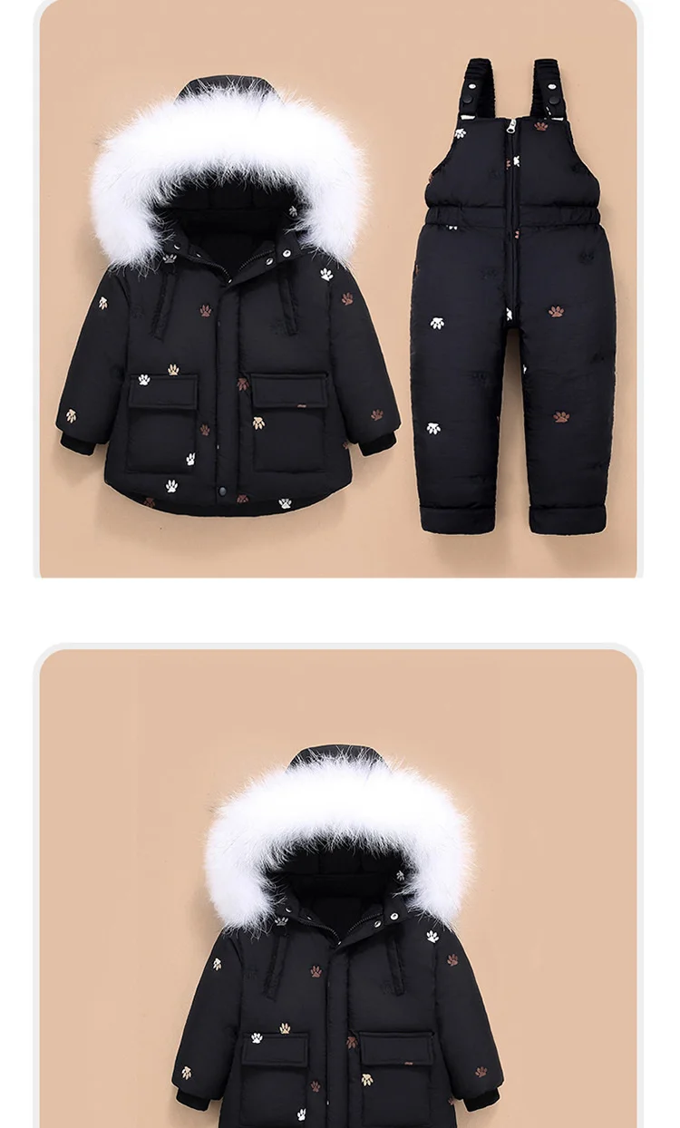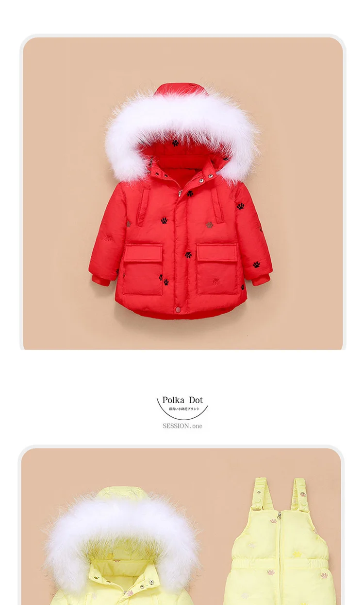 Новогодний Зимний пуховик, комбинезон для детей, одежда для маленьких девочек и мальчиков, Детское пальто, комплект одежды со штанами, парка с капюшоном для детей 1-4 лет