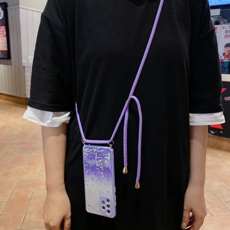 Блестящий чехол через плечо для Xiaomi Redmi Note 10 Pro 10s 9T 9A POCO X3 NFC F3 Mi 11 ожерелье ремешок градиентный чехол для телефона