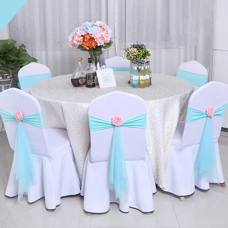 Пояс для стула из спандекса с розовым шаром, искусственный ленты для свадебных стульев, галстук бант на свадебный стул, 10 шт., 13 цветов, чехол на стул с лентой, для вечеринки