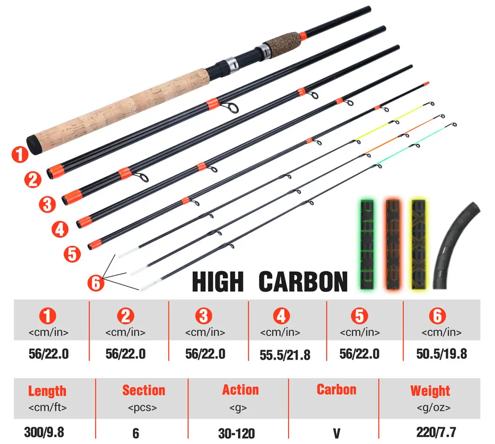 Удлиненная Удочка из углеродного волокна, 6 секций, для рыбалки