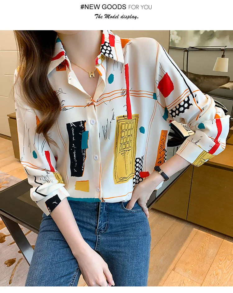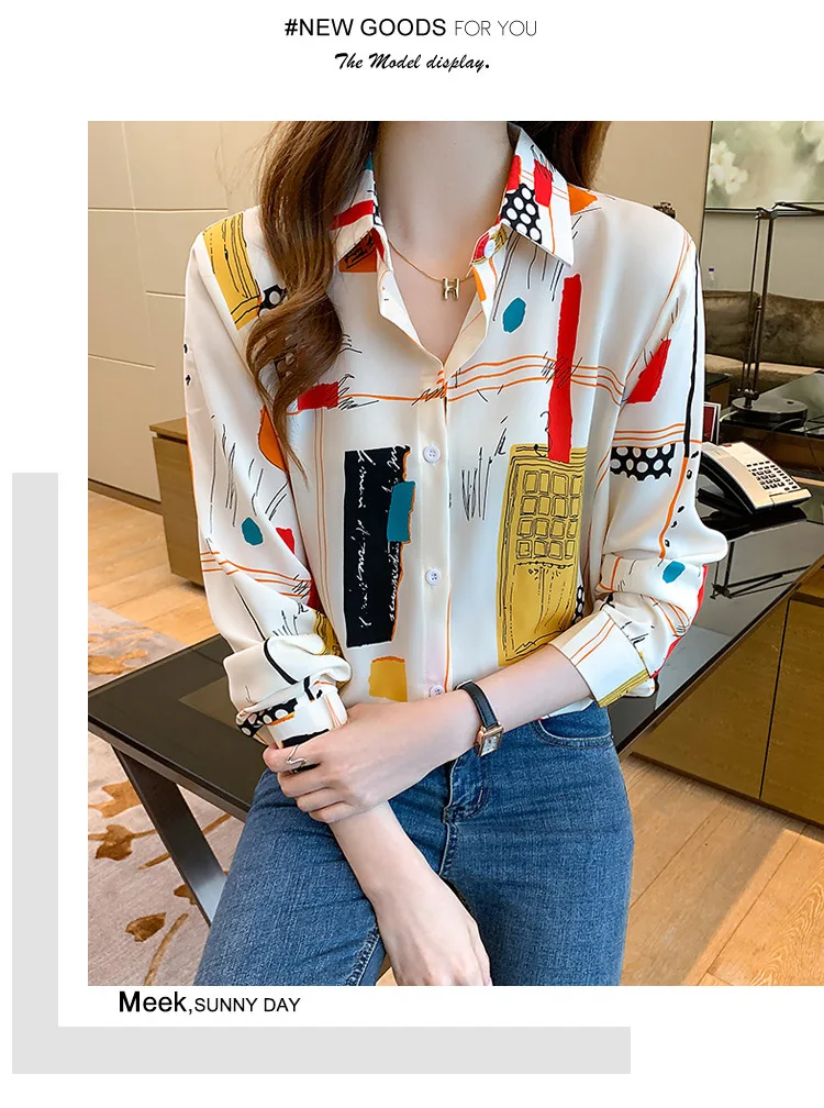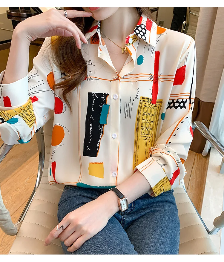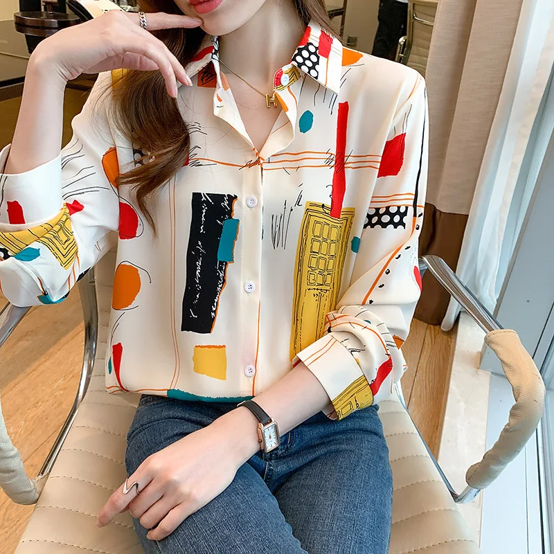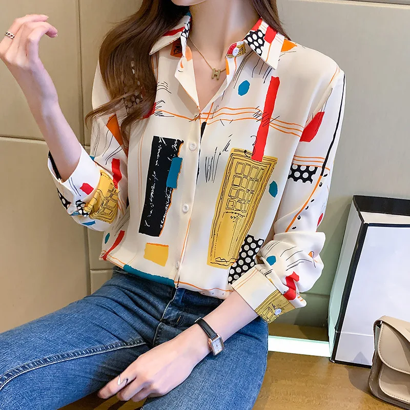 Женская хлопковая блузка с длинным рукавом, элегантная хлопковая блузка в гонконгском стиле ретро с принтом, блузка с длинным рукавом для девушек, B108