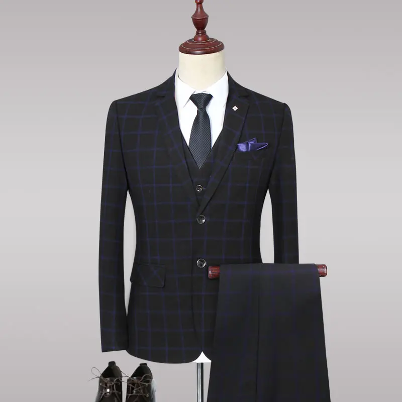 Мужской свадебный комплект из трех предметов, клетчатый синий и сер...