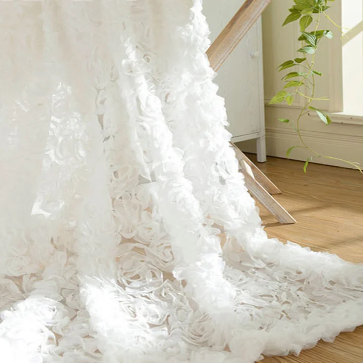Пасторальная Корейская креативная белая кружевная 3D занавеска в виде Розы розовая вуаль пользовательские оконные экраны для брака гостиной спальни