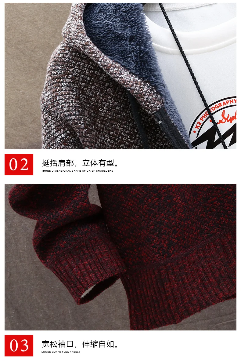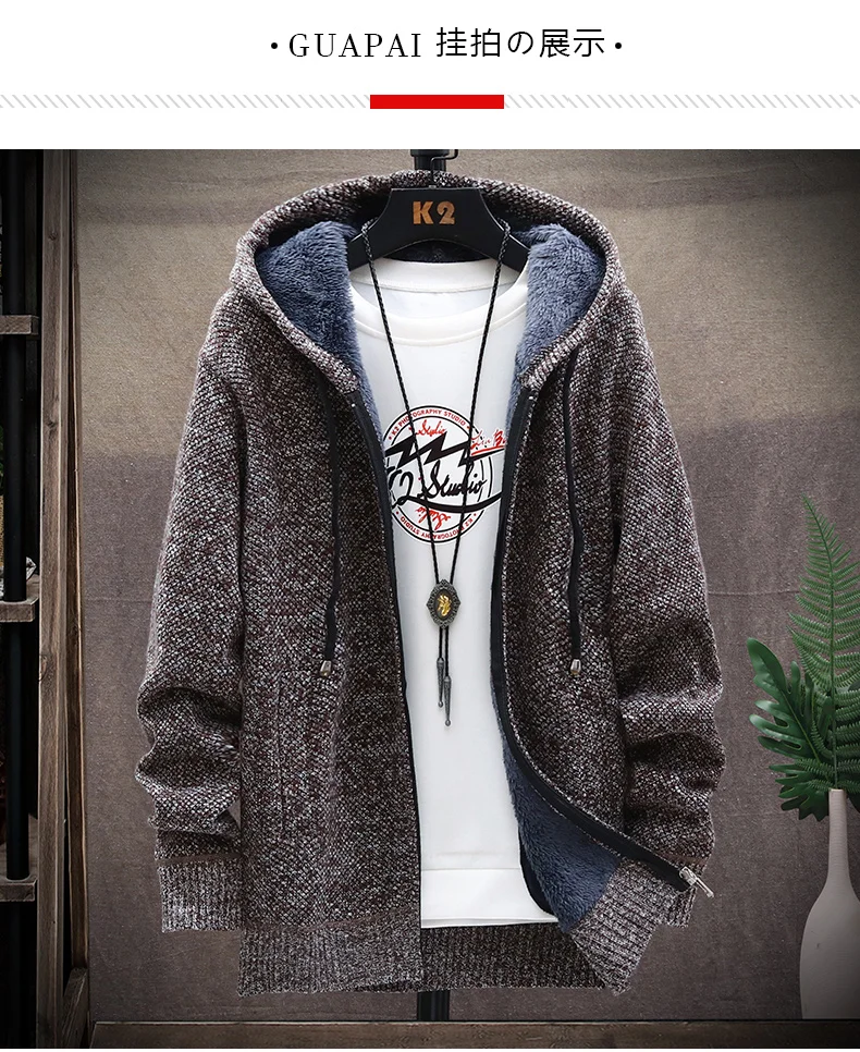 Осенне-зимний джемпер с капюшоном, кардиган на молнии, флисовый свитер из искусственного меха и шерсти, плотный Стильный теплый мужской свитер, куртка, пальто
