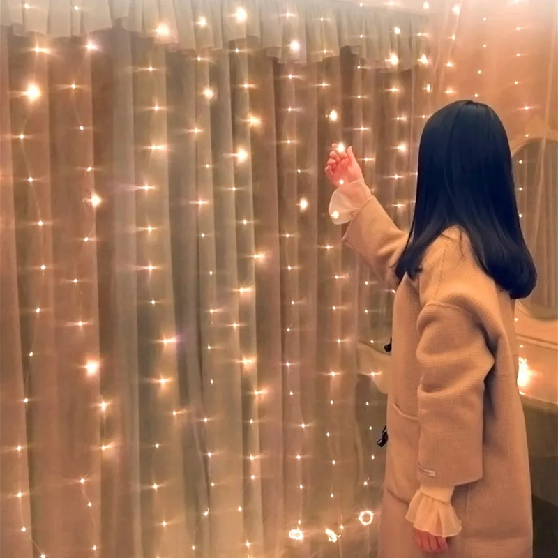 Светодиодная гирлянда с дистанционным управлением, уличное садовое освещение, занавески, рождественские украшения для дома, новогодний декор, 3 м, USB