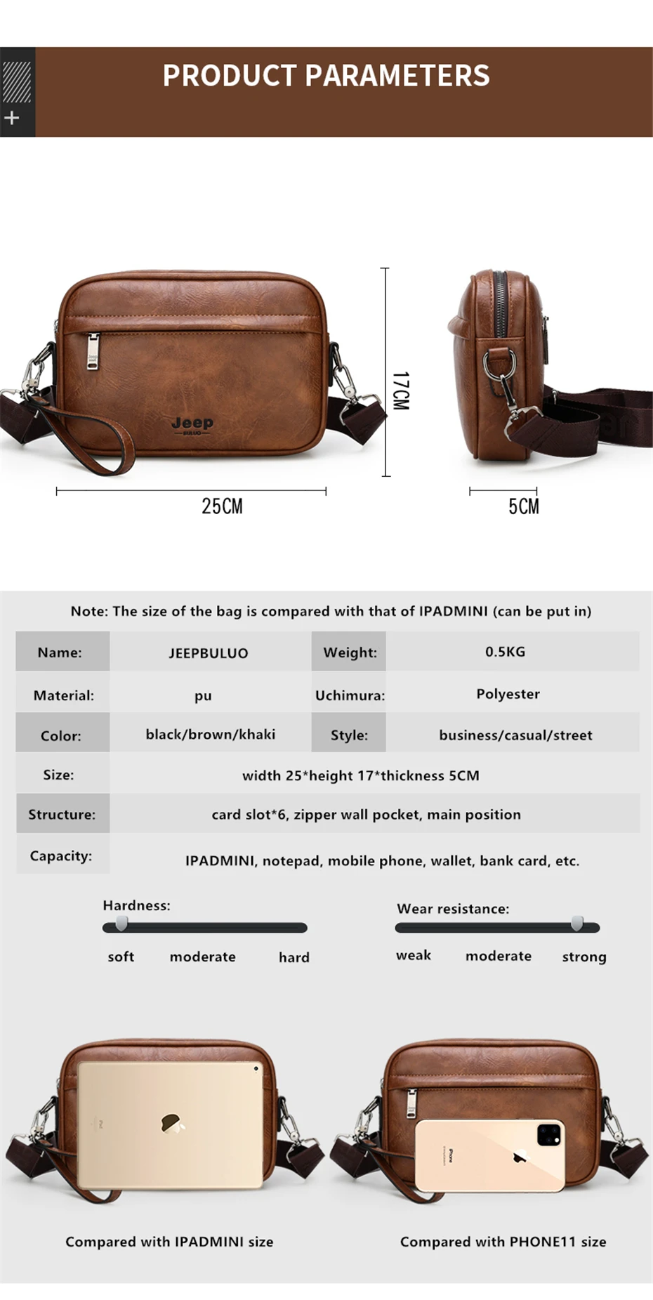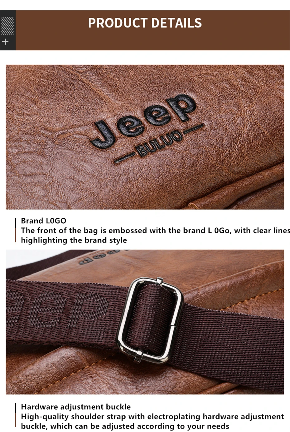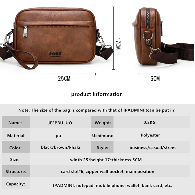 Мужская повседневная сумка через плечо JEEP BULUO, маленькая сумка из искусственной кожи с надписью, модная сумка-мессенджер для iPad 2021 дюйма, все сезоны, 9,7