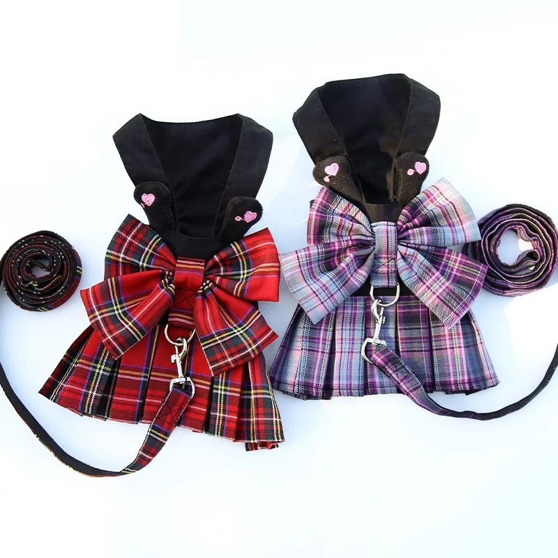 Клетчатая Одежда для кошек и щенков, платье для маленьких собак, юбка-шлейка для чихуахуа, йоркширского мальтского пуделя, одежда-шлейка для собак