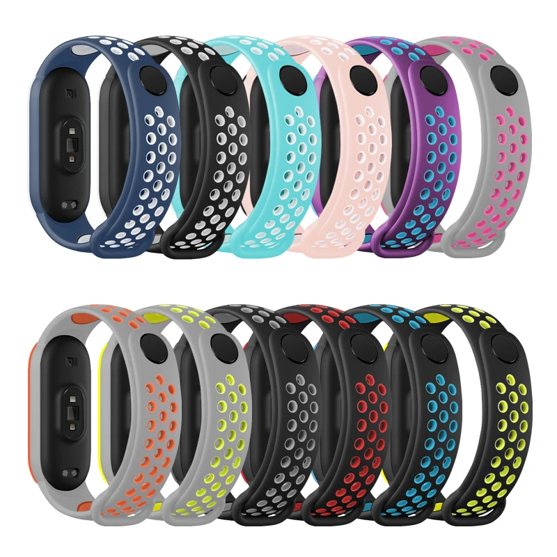 Силиконовый ремешок для Xiaomi Mi Band 5 4 3 6 пористый двухцветный...