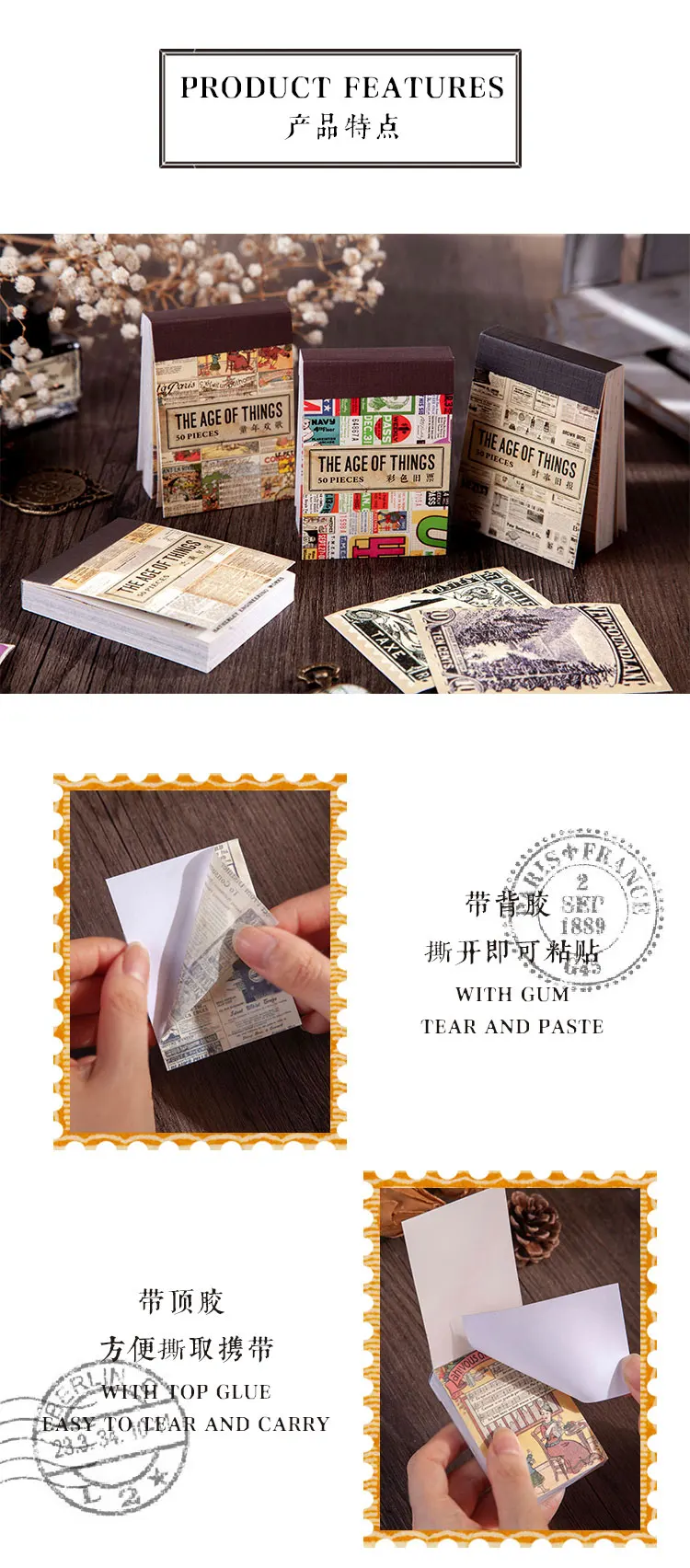 50 шт. винтажные бумажные стикеры Washi набор старых времена газетн...