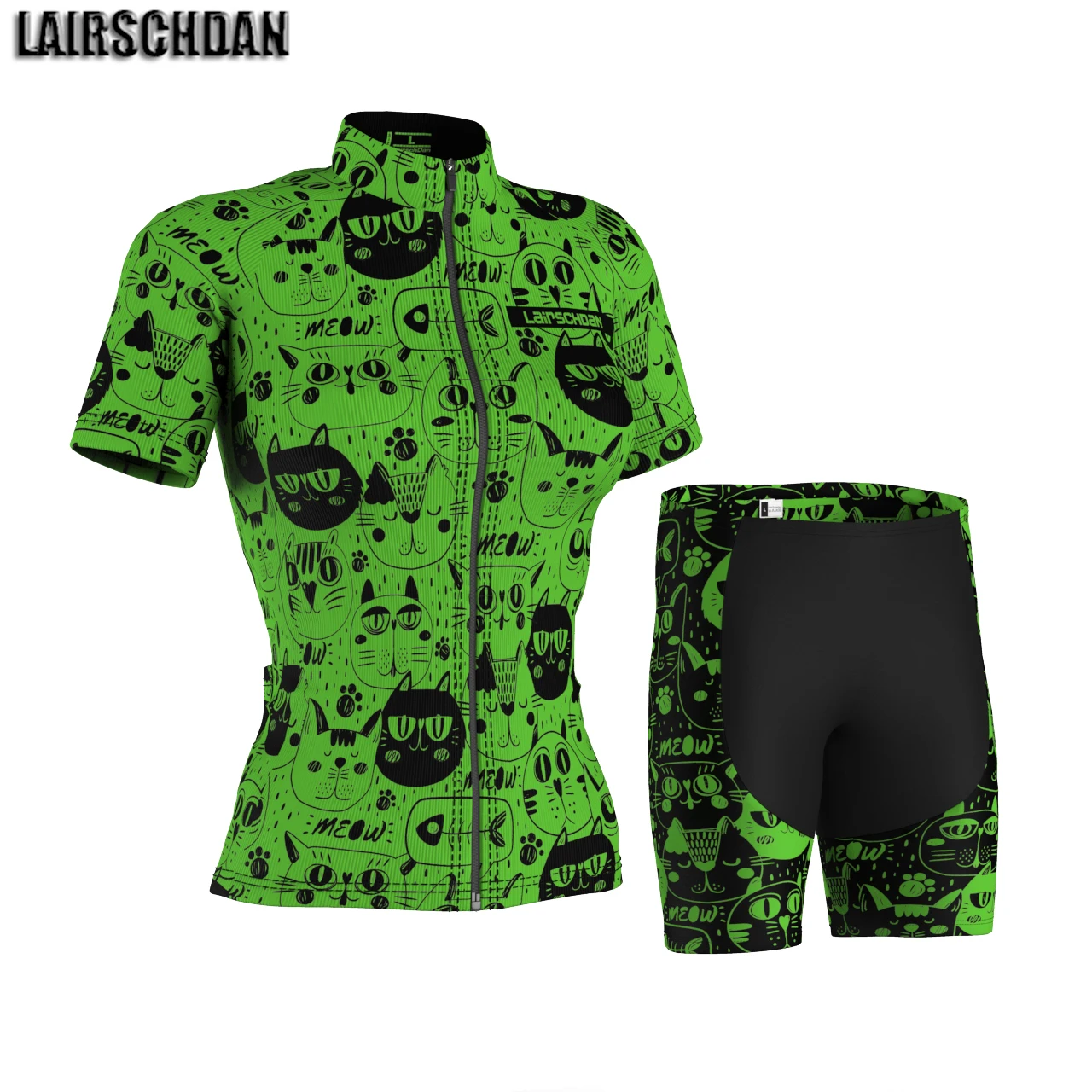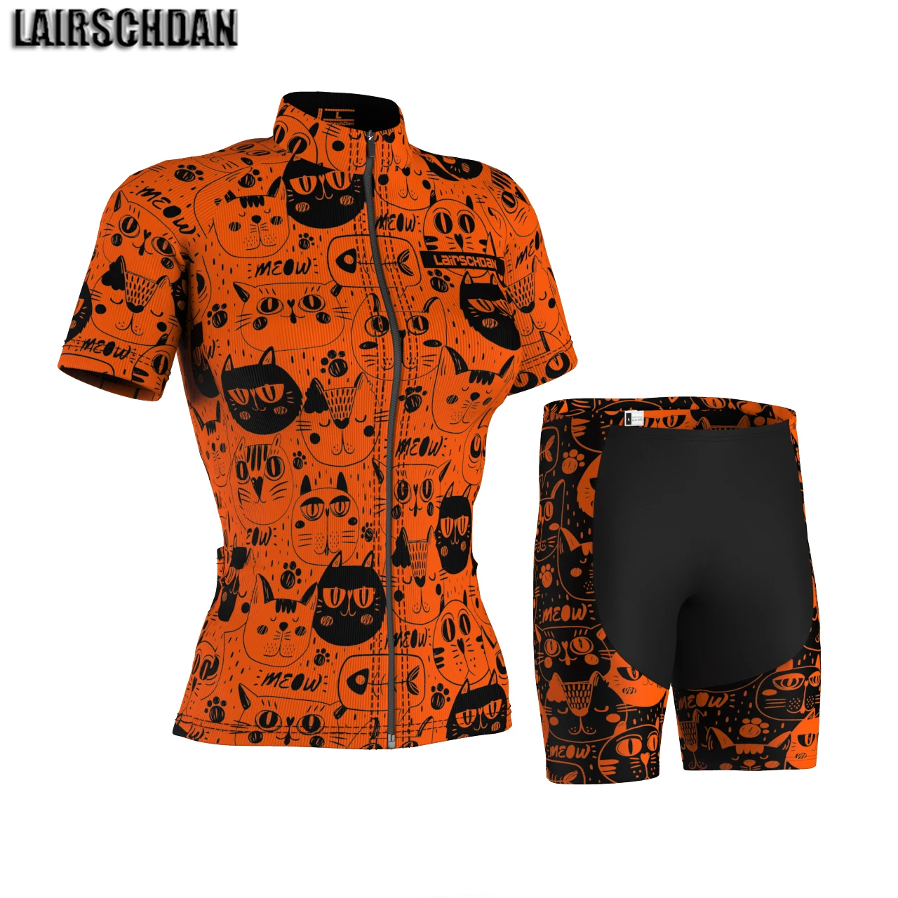 Одежда для велоспорта LairschDan с забавной кошкой для девочек, женские комплекты, лето 2022, Женская велосипедная форма, белая велосипедная одежда, дорожный велосипед, наряд