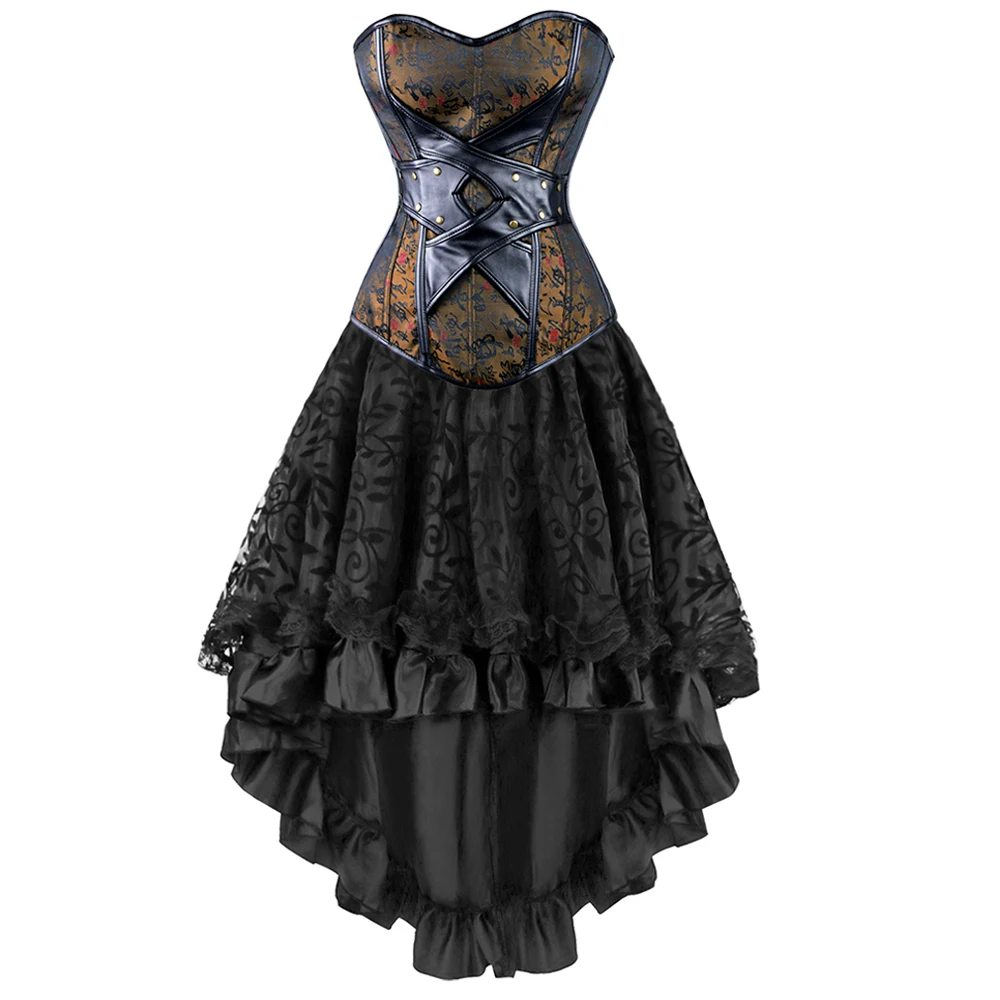 Женское сексуальное готическое платье-корсет в викторианском стиле стимпанк, кожаные корсеты и юбка-бюстье, тренировочный костюм для вечевечерние, Новинка