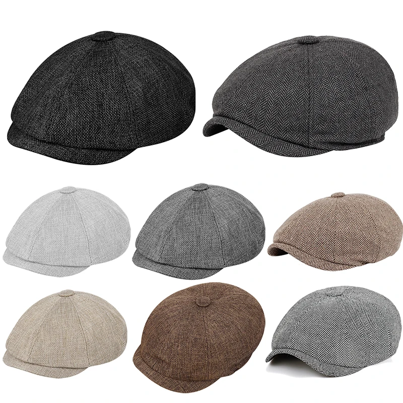 Кепка-берет мужская из твида, уличная шапка газетчика в елочку, восьмиугольная с полями, классные береты в стиле хип-хоп, зимавесна