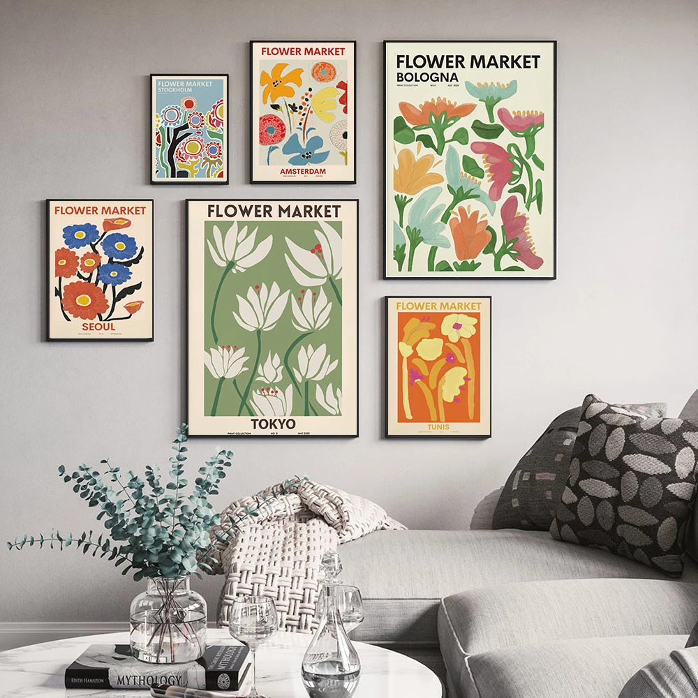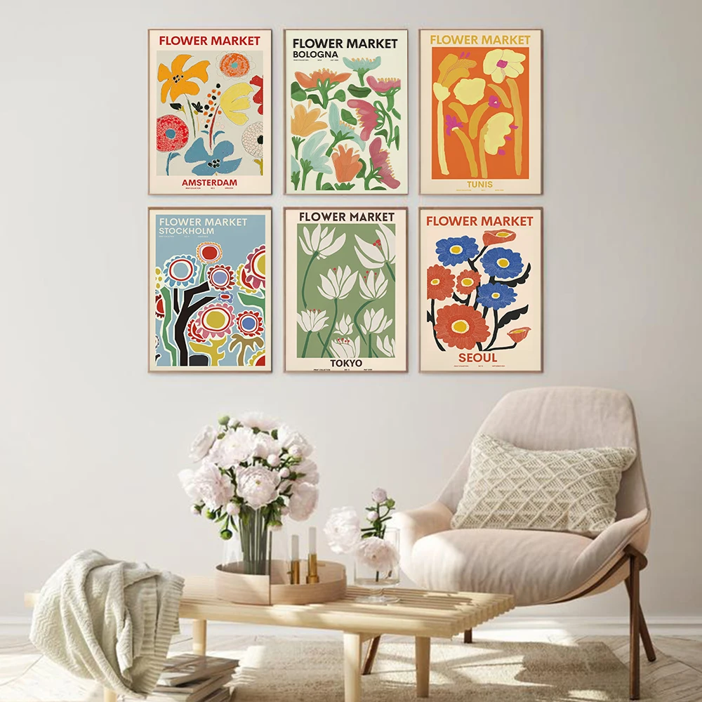 Абстрактная масляная живопись, цветочный рынок, японское настенное искусство Матисса, скандинавские постеры и печатная настенная живопись, украшение для гостиной