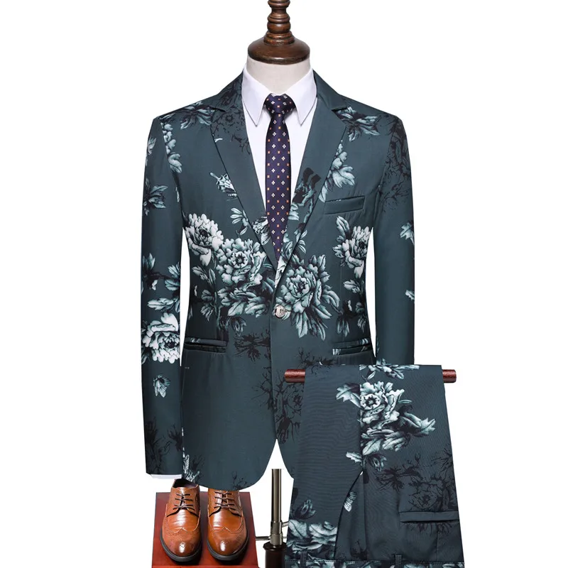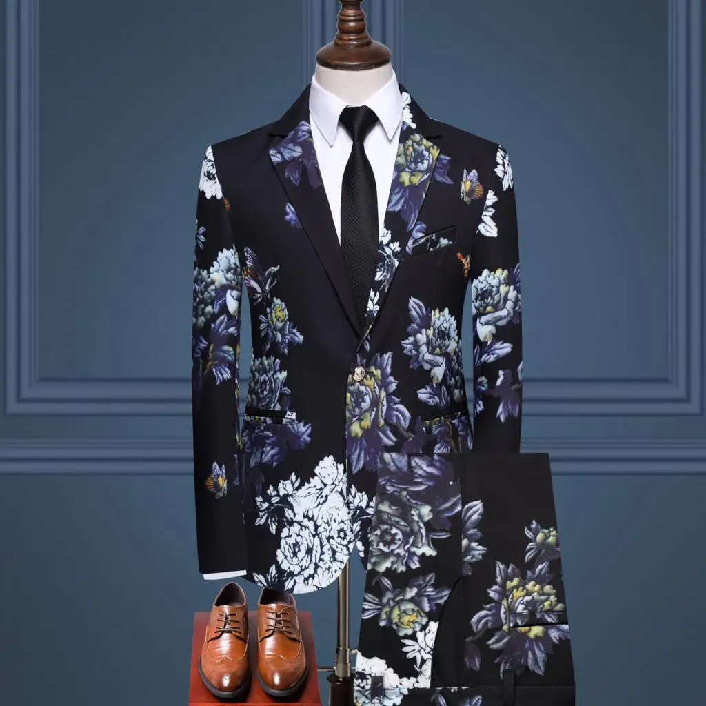 Костюм мужской из 2 предметов, пиджак и брюки с принтом, модный Банкетный дизайн, высококлассная облегающая куртка в британском стиле, брюки для джентльмена