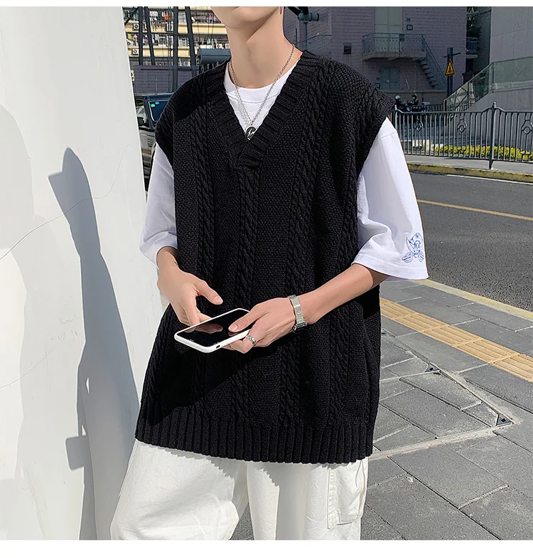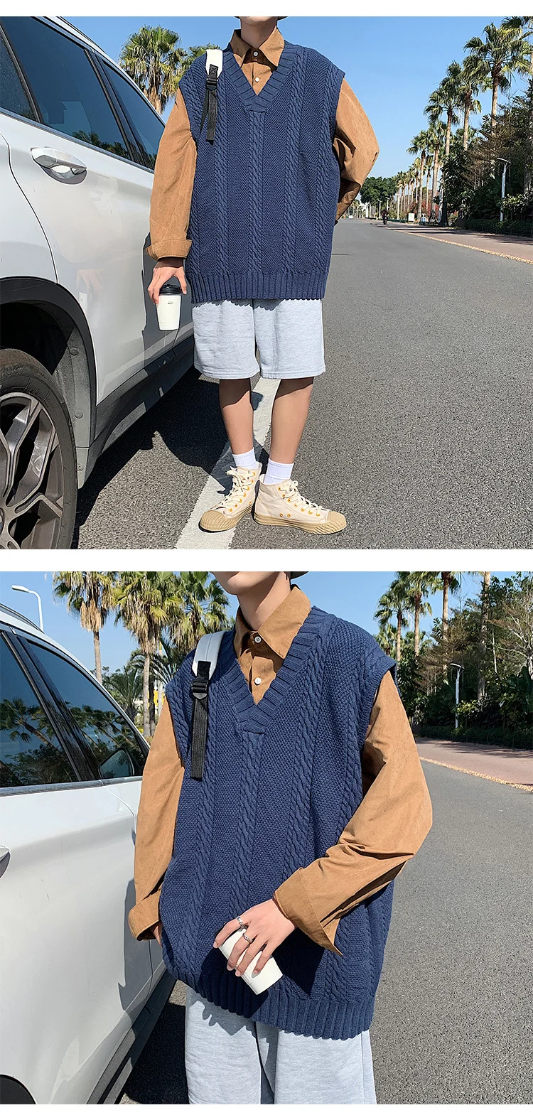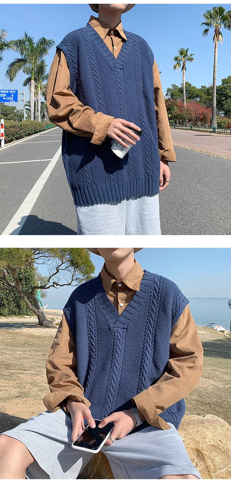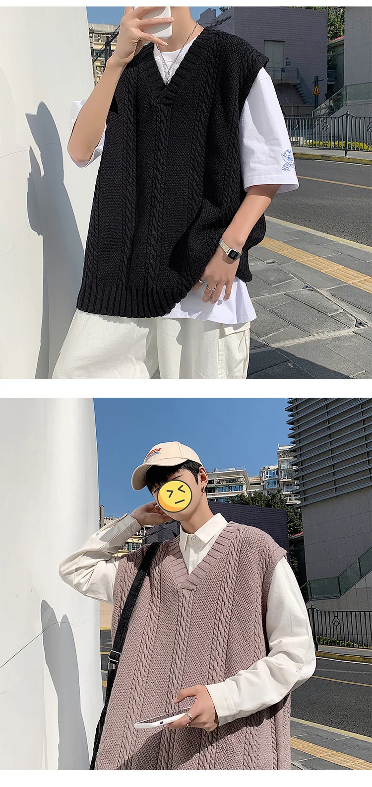 Новинка Весна 2022, мужской свободный однотонный простой свитер IEFB в Корейском стиле с завязками и V-образным вырезом, жилет без рукавов, универсальные повседневные топы, шик для подростков