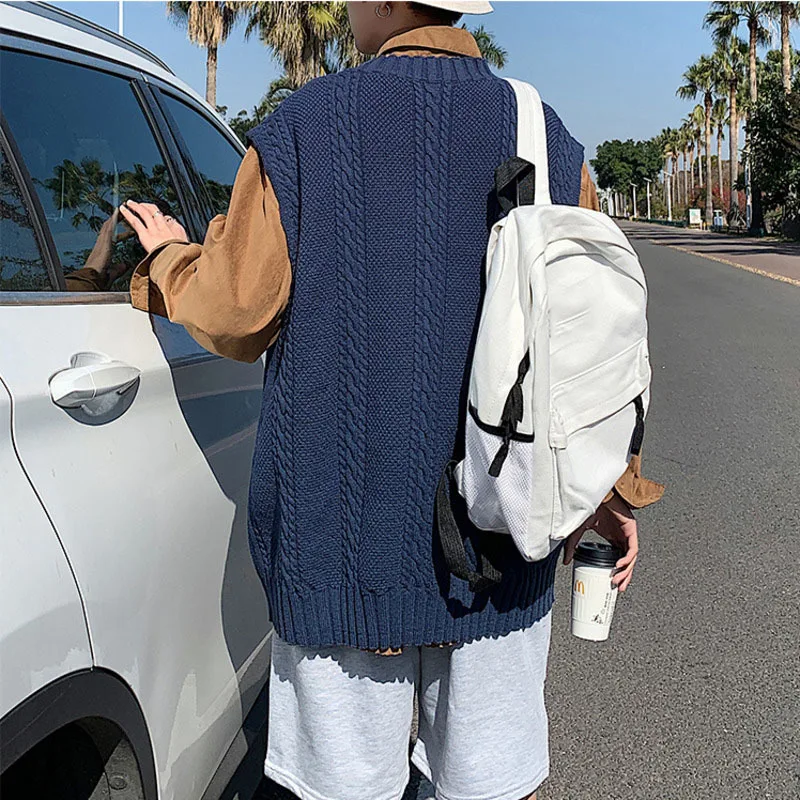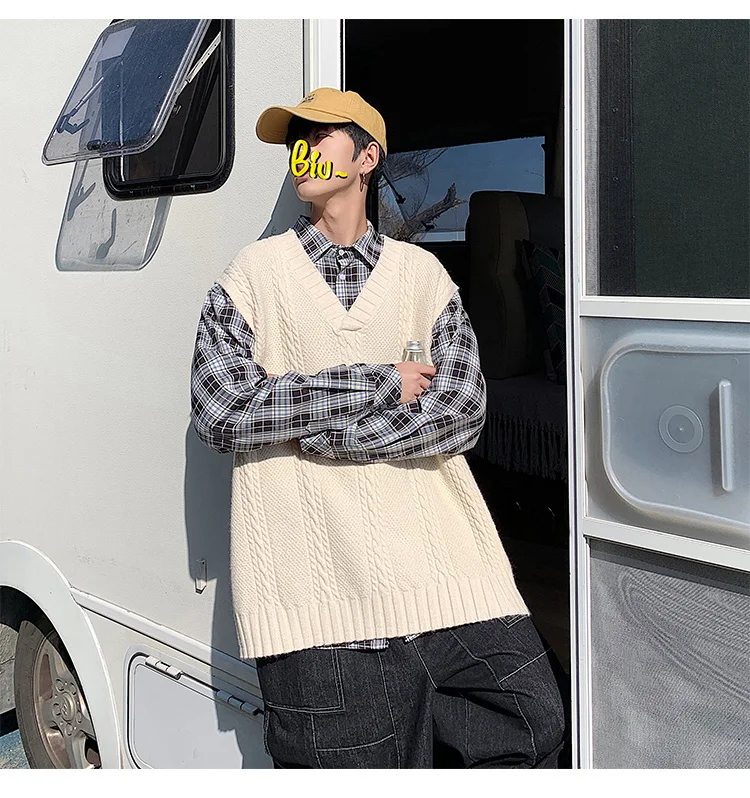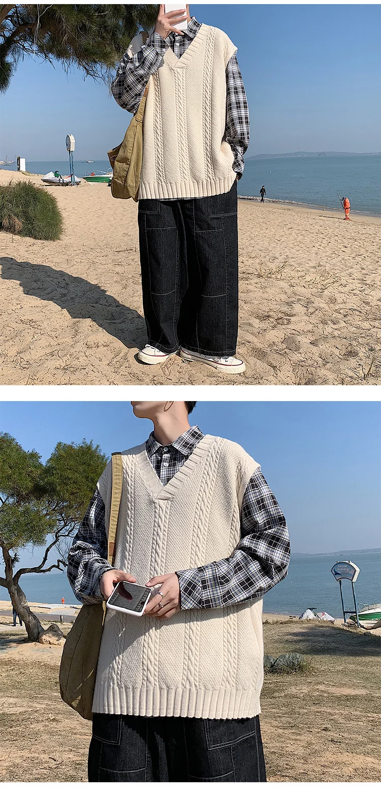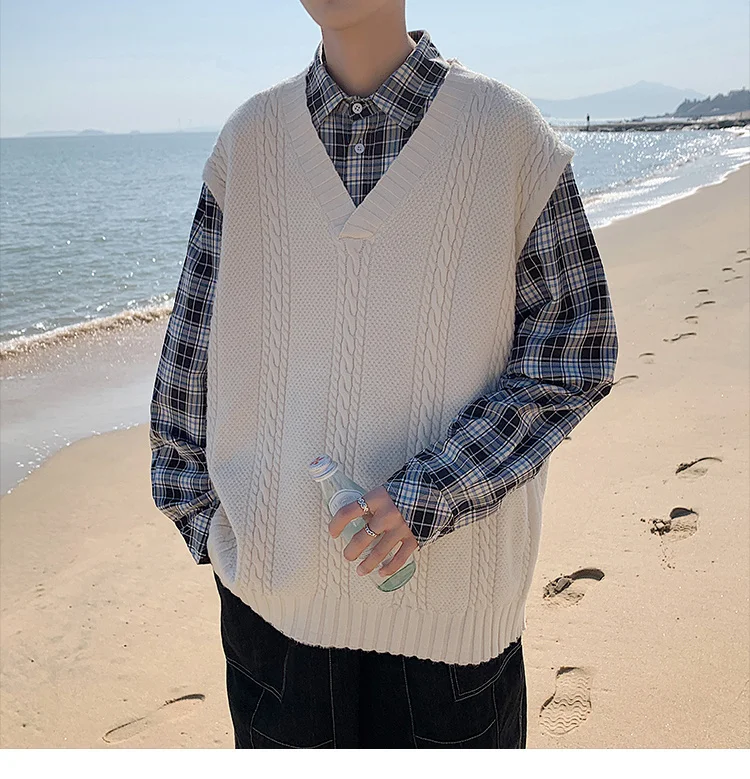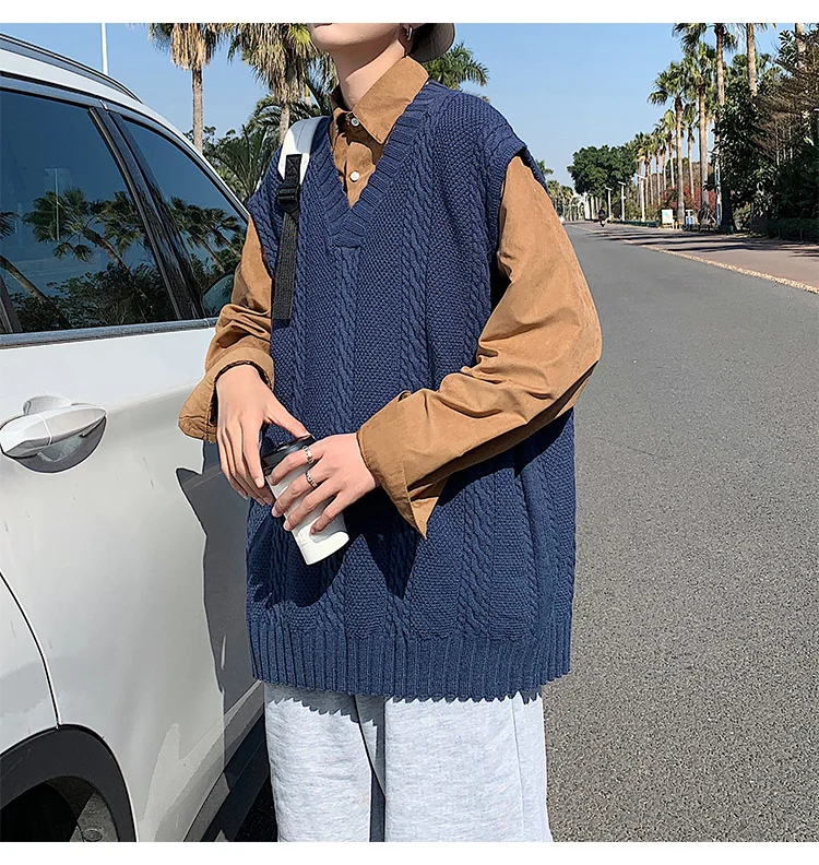 Новинка Весна 2022, мужской свободный однотонный простой свитер IEFB в Корейском стиле с завязками и V-образным вырезом, жилет без рукавов, универсальные повседневные топы, шик для подростков