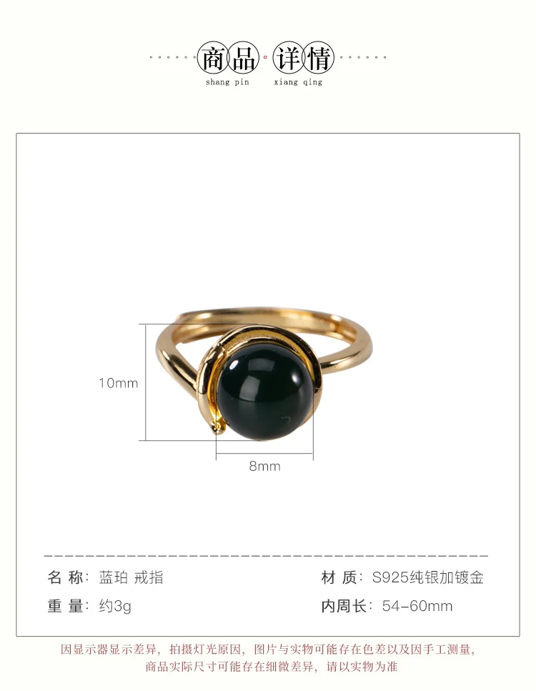 Новинка, позолоченные кольца из стерлингового серебра S925 с натуральным мексиканским Ламбертом янтарем, женские милые регулируемые Открытые Кольца, Изящные Ювелирные изделия K0184