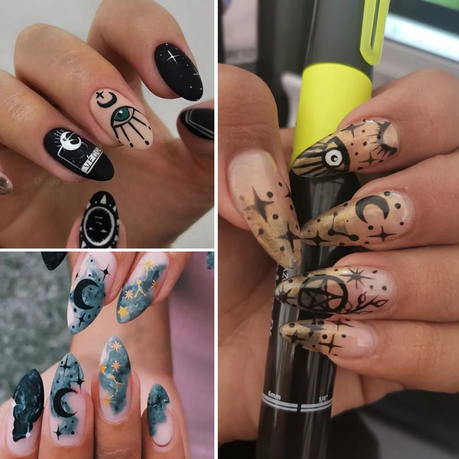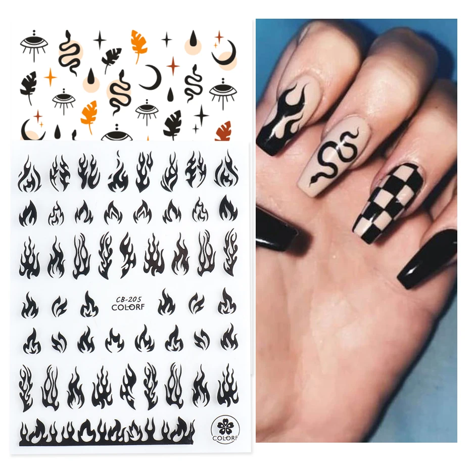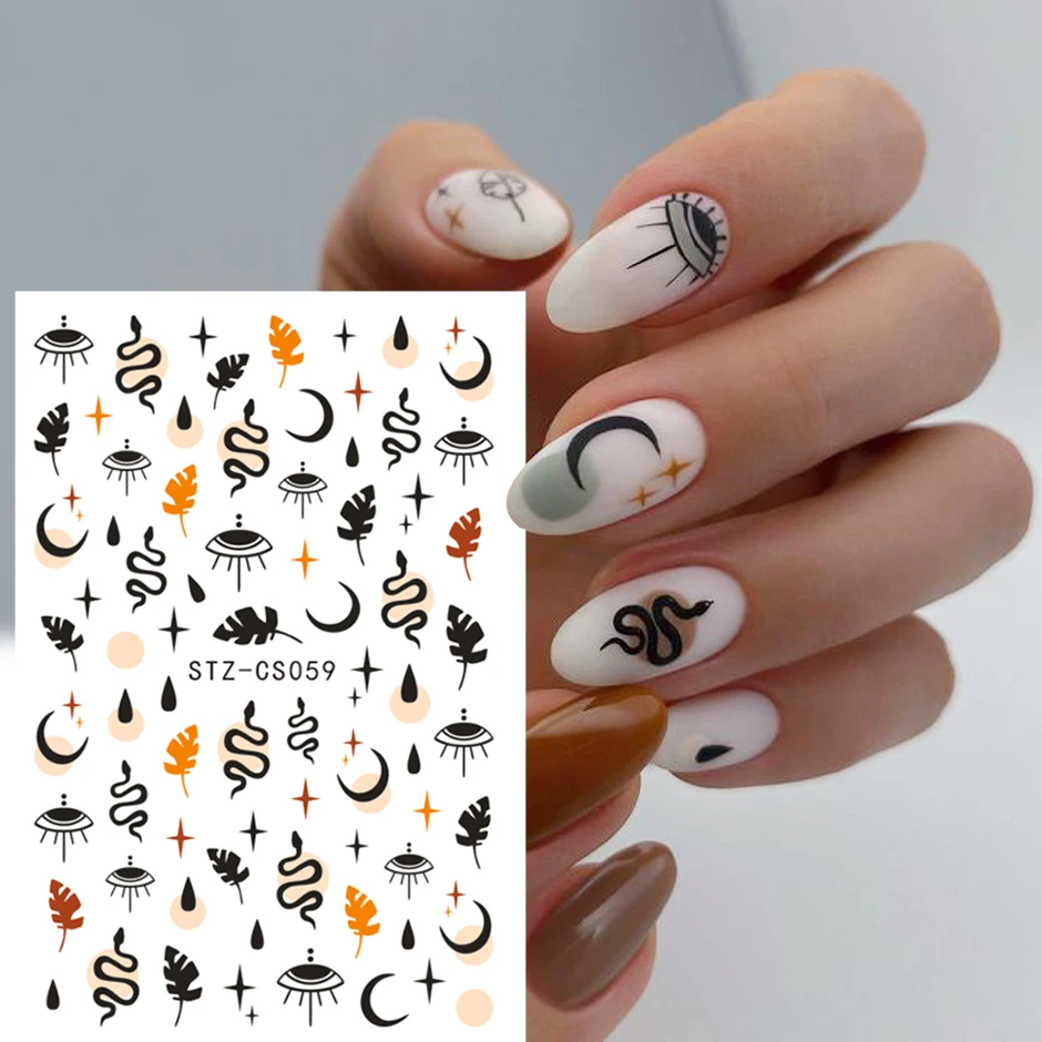 3D маникюрная наклейка для ногтей, наклейки на Хэллоуин, черный лист змеи, магический Вдохновленный Забавный дизайн ногтей для слайдеров, украшения CHSTZCS05
