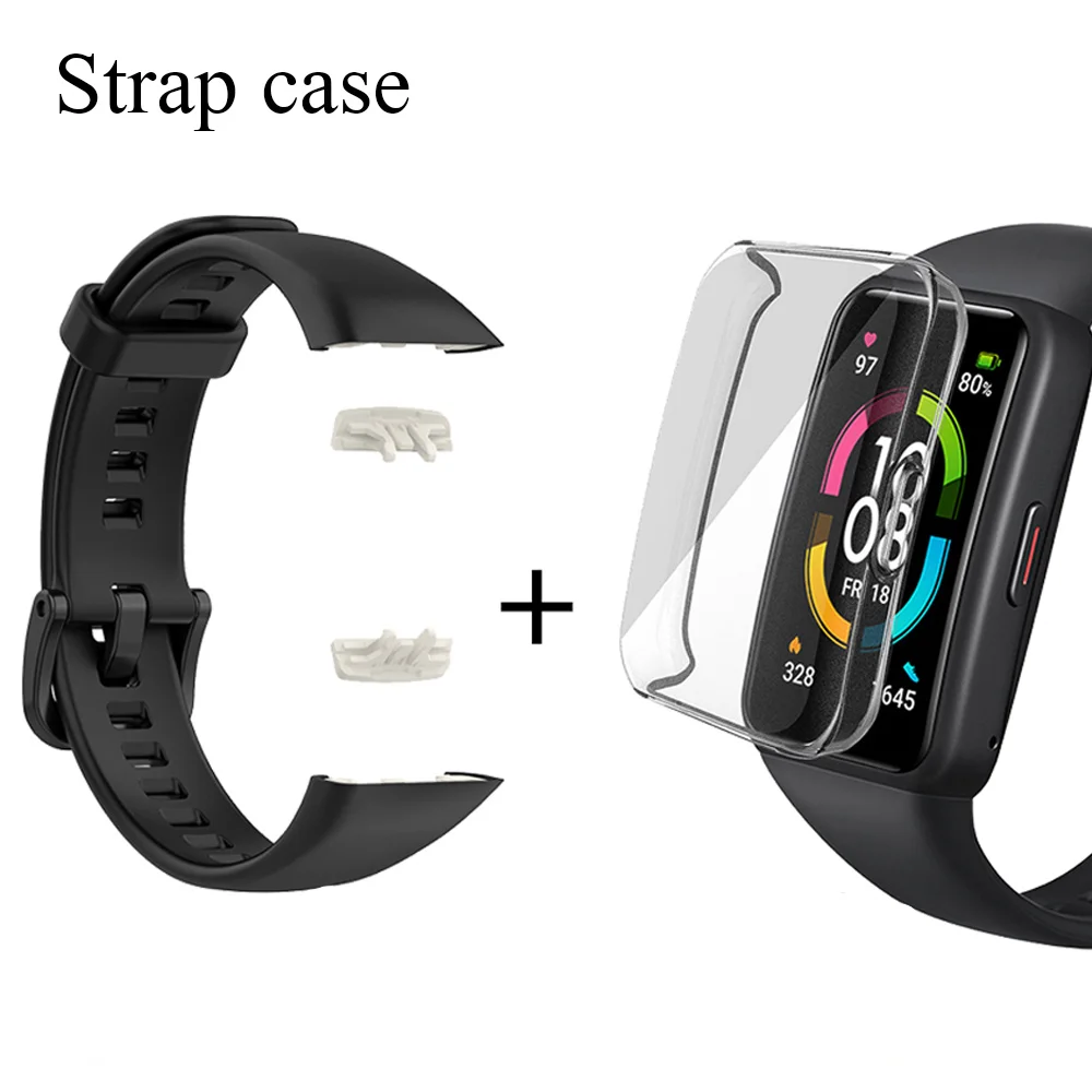 Сменный ремешок для Huawei Band 6, силиконовый ремешок для часов Honor Band 6, ремешок с ТПУ, полный экран, защитный чехол, черный ремешок