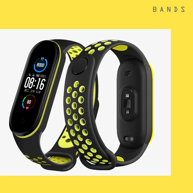 Силиконовый ремешок для Xiaomi Mi Band 5 4 3 6 пористый двухцветный...