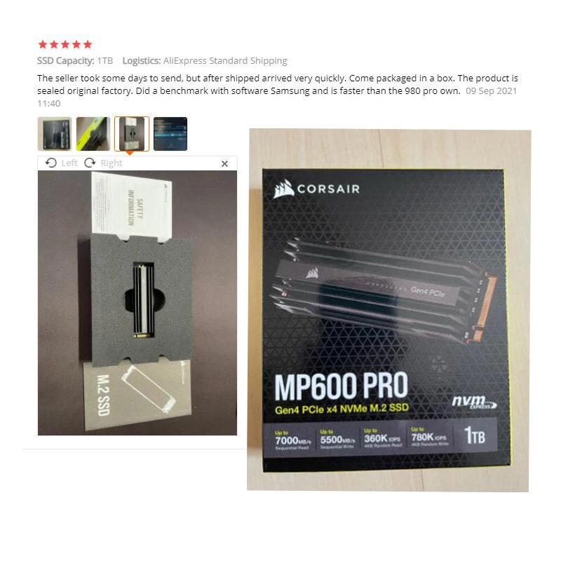 Продавец потратил несколько дней на отправку, но после того, как товар был доставлен очень быстро. Поставляется в упаковке. Продукт запечатан на заводе. Сделал отметку с программным обеспечением Samsung и быстрее, чем 980 pro own.