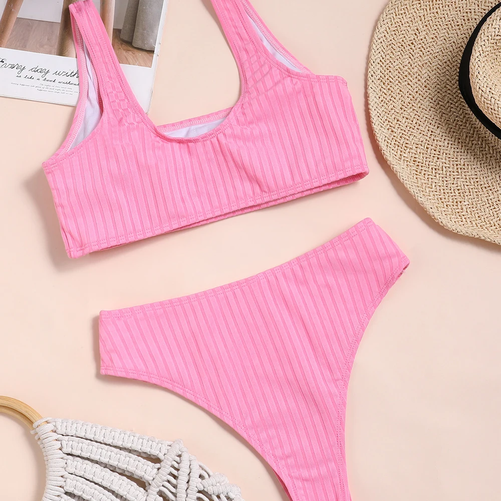 Бикини купальники женские Пуш-ап купальники трикотажные с высокой талией ребристые ремешки купальный костюм бикини бразильское бикини 2021 новая пляжная одежда