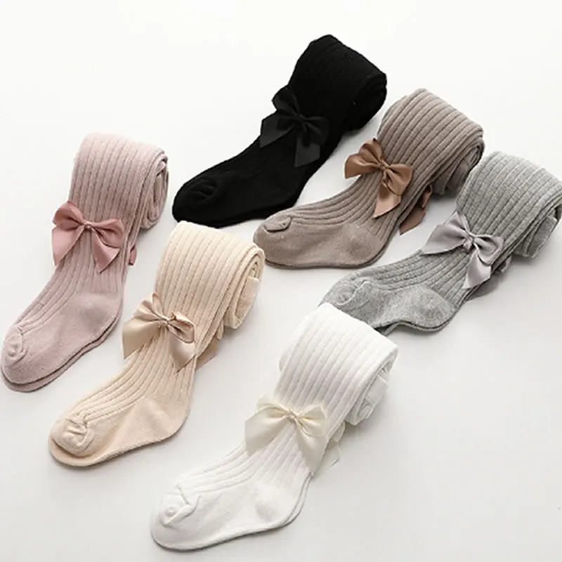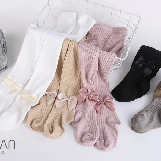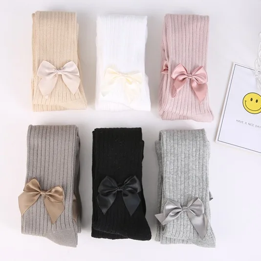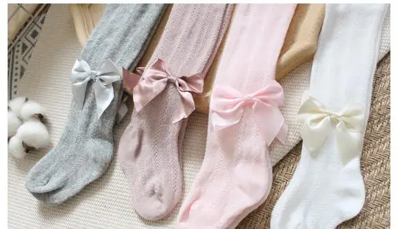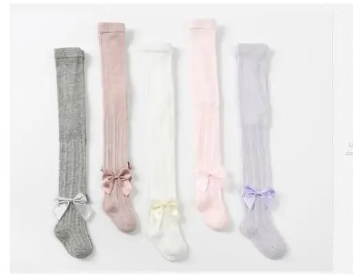 Новинка, Хлопковые вязаные колготки в Корейском стиле с бантом и вертикальной полосой для девочек, детские чулки для девочек, колготки принцессы с бантиком
