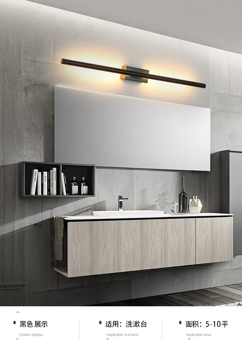 Современная линейная светодиодная настенная лампа Kobuc, 60 см, 80 см, 100 см, 120 см, настенный светильник, настенное бра для бара, зеркала, переднее Черное золото, светодиодное бра, светильник в