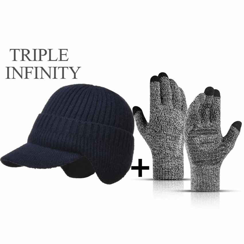 Зимние стандартные теплые мужские шапки TRIPLE INFINITY, толстые мя...