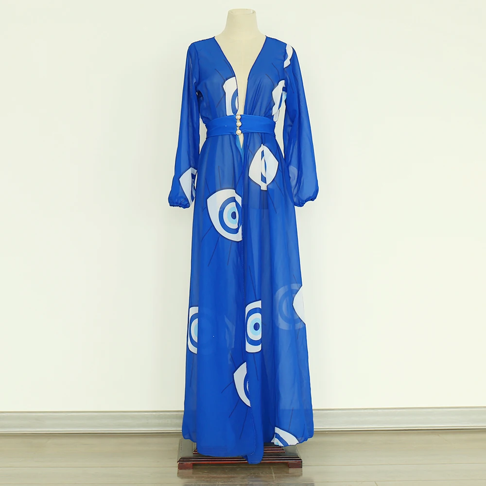 Пляжная накидка на бикини с голубыми глазами, туники для пляжа, Длинная накидка на бикини, Пляжное платье, саронг, пляжный купальник, накидки