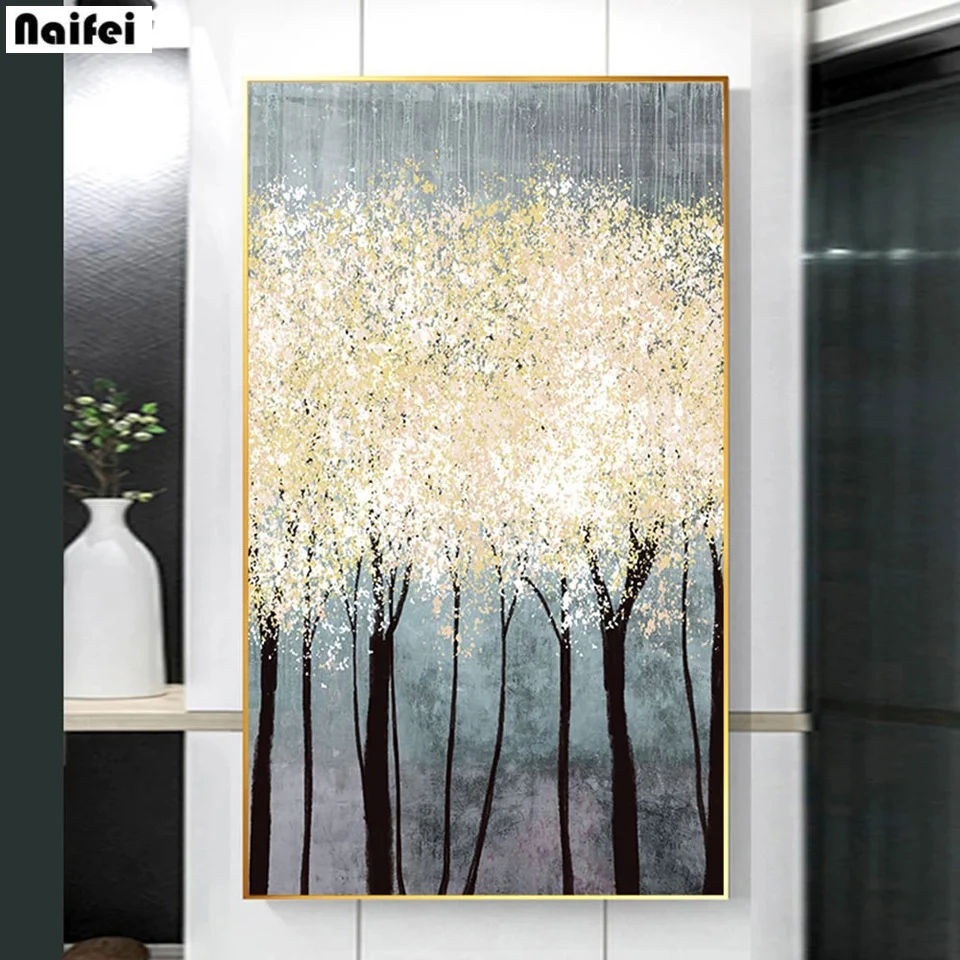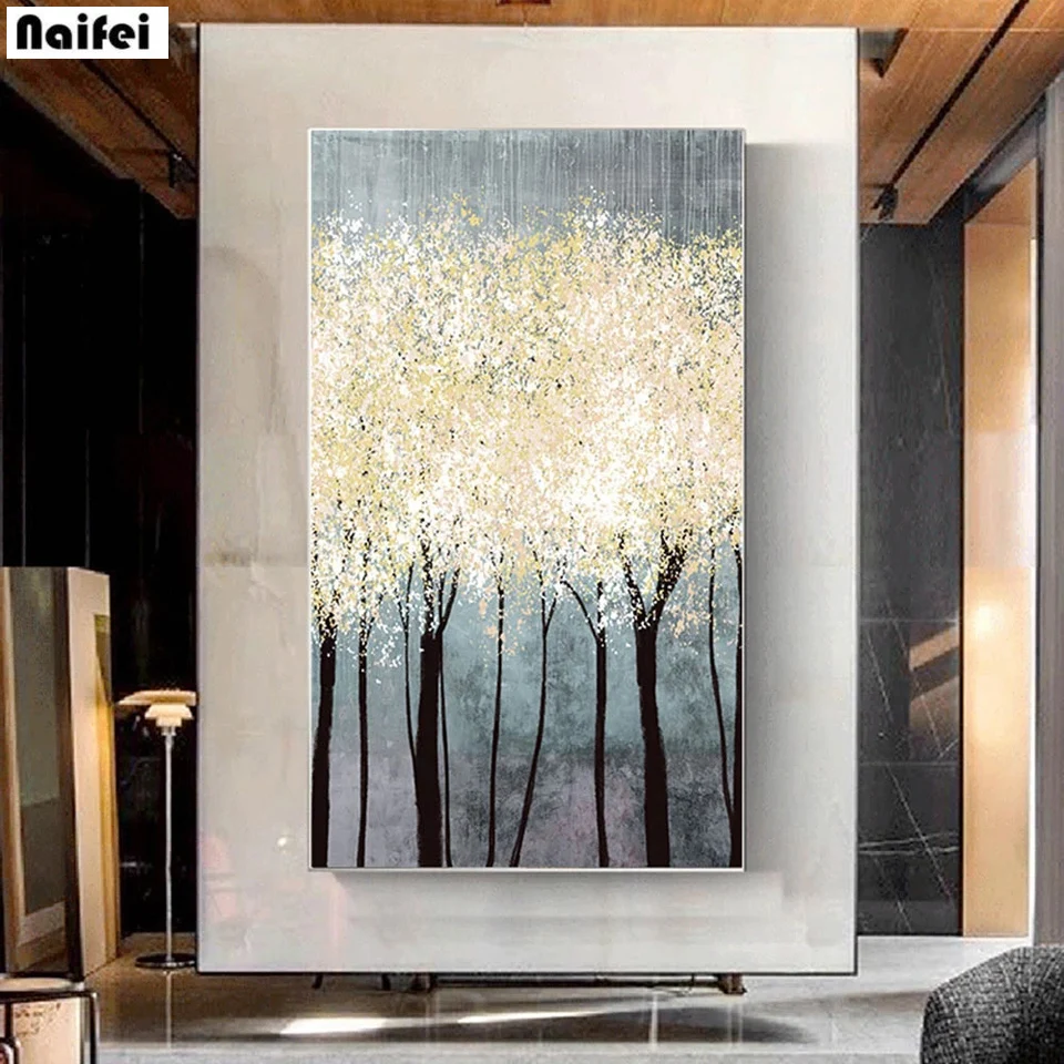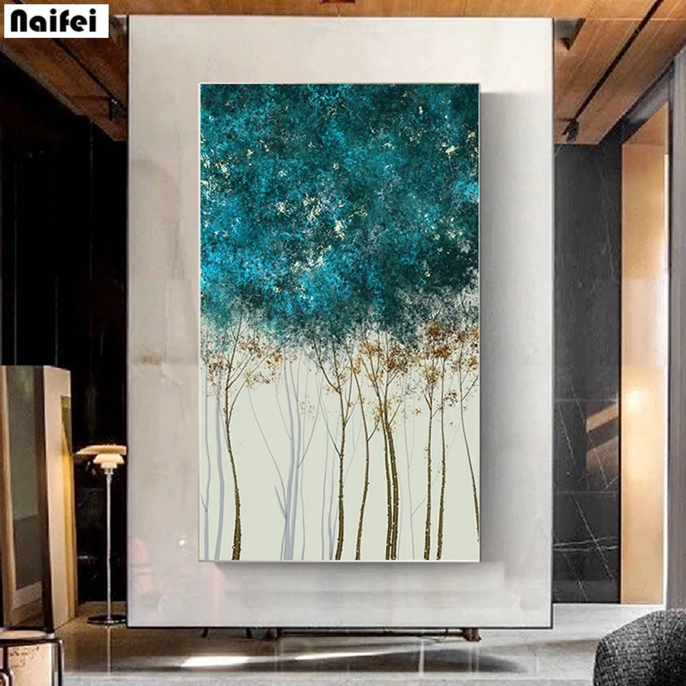 5D DIY алмазная живопись Счастливое дерево синий и золотой желтый пейзаж Алмазная вышивка стежок Стразы мозаика настенная живопись