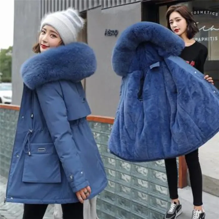 Новинка 2021, зимняя куртка, теплое толстое пальто с меховым воротн...