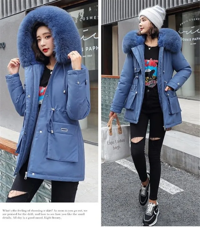 Женская хлопковая куртка Miss Down, зимняя Свободная куртка с большим меховым воротником, утепленная Студенческая хлопковая парка, 2021