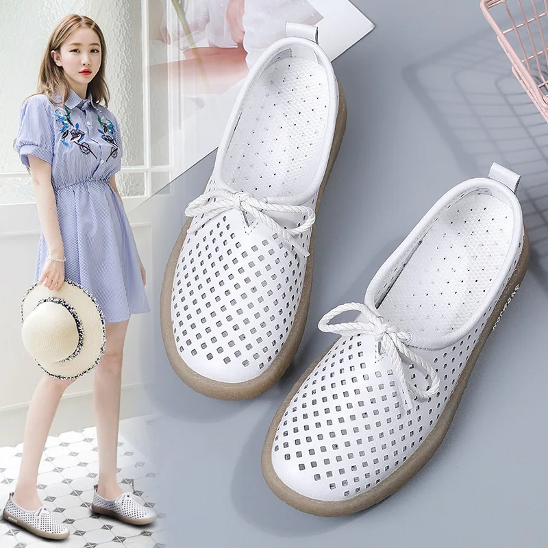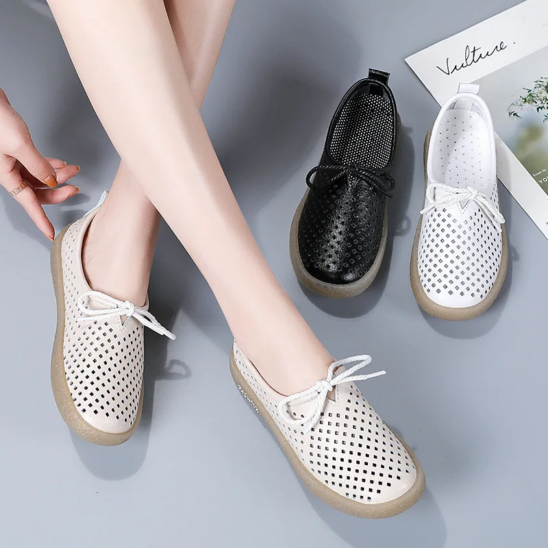 Лоферы женские из натуральной кожи, дышащие удобные, мягкая повседневная обувь на плоской подошве, белые, лето
